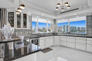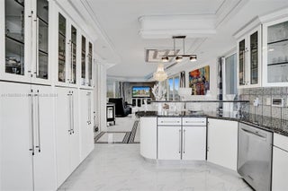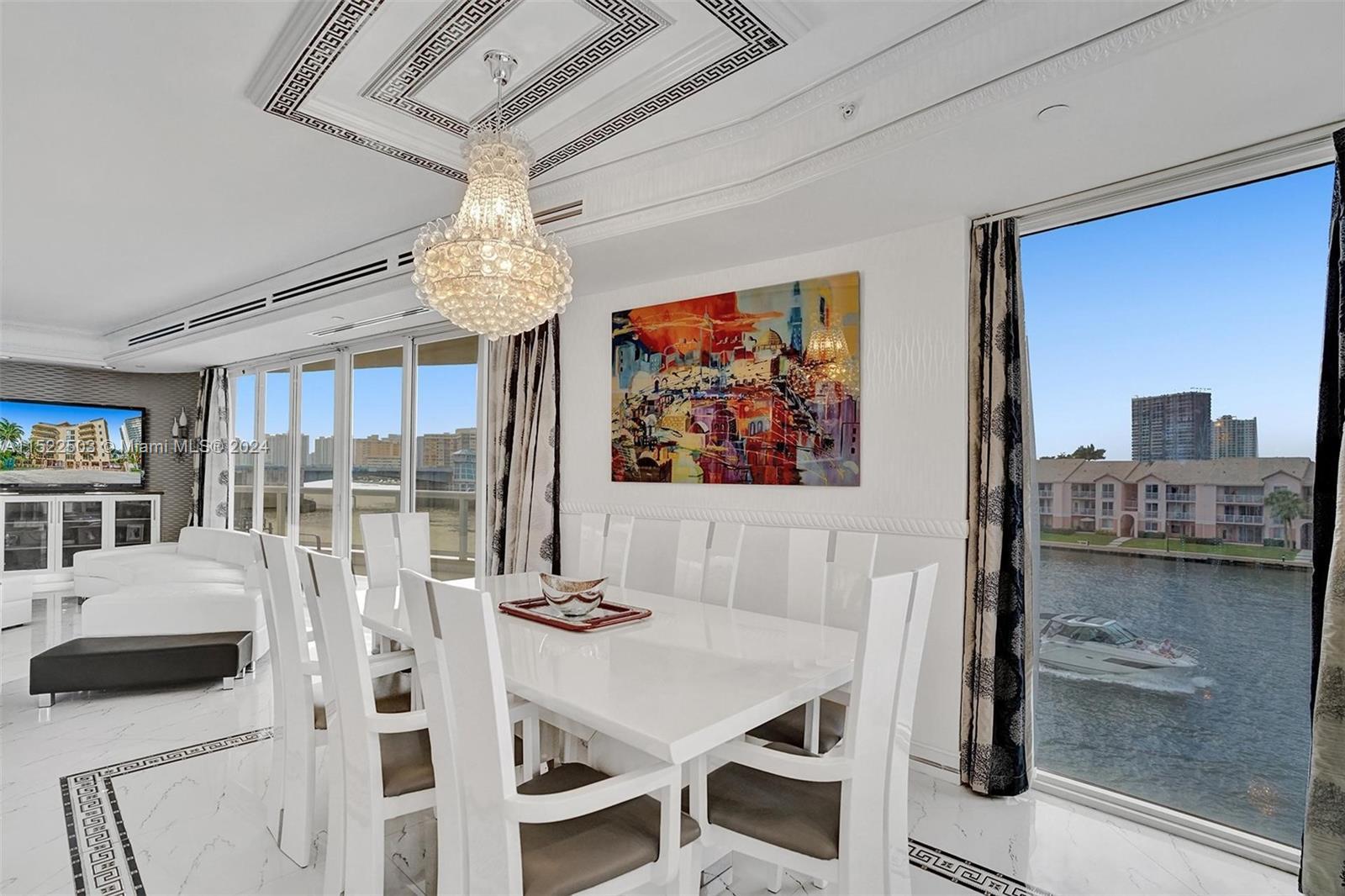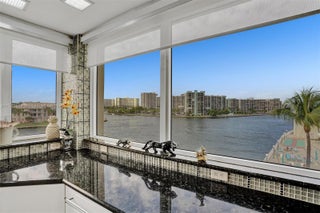 EXTREMELY LOW maintenance fees in a one of a kind boutique building built in 2014!!! Enjoy a deed boat dock or walk to the beach! This unique whole-floor corner unit boasts one of the best Intracoastal views in Hallandale beach. High ceilings with 8 foot doors! Done with exquisite taste, this luxury 3-bedroom/ 3-bath apartment features a very elegant living room with a massive wraparound balcony, sliding doors, custom white wood kitchen with granite countertops, stunning marble floors with Versace mosaic! The sophisticated ensuite master bedroom has a balcony that overlooks the bay and great place to enjoy sunsets. Amenities include a rooftop pool, bar, sauna, BBQ area & a deck. The residence comes with a boat and a slip!