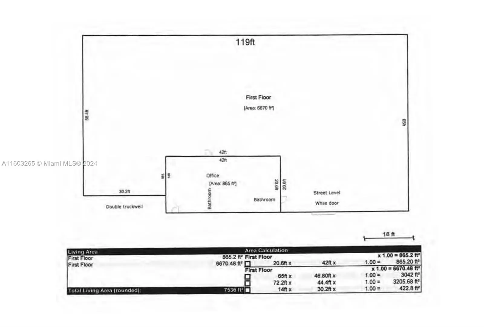 West Little River Warehouse for Sale. Standalone building. 13,080 SF total. 7,536 SF building includes 6,671 SF warehouse space and 865 SF office space. 18' clear ceiling height. 1 Grade Level and 2 Truck Well Loading. 3-Phase Electrical Power. 40-year certification completed (50-year certification underway). Parking for up to 20 Cars. Qualified Opportunity Zone. Located within Miami-Dade County's Green Technology Corridor with major public works projects underway. Lease has a 60-day exit clause.
