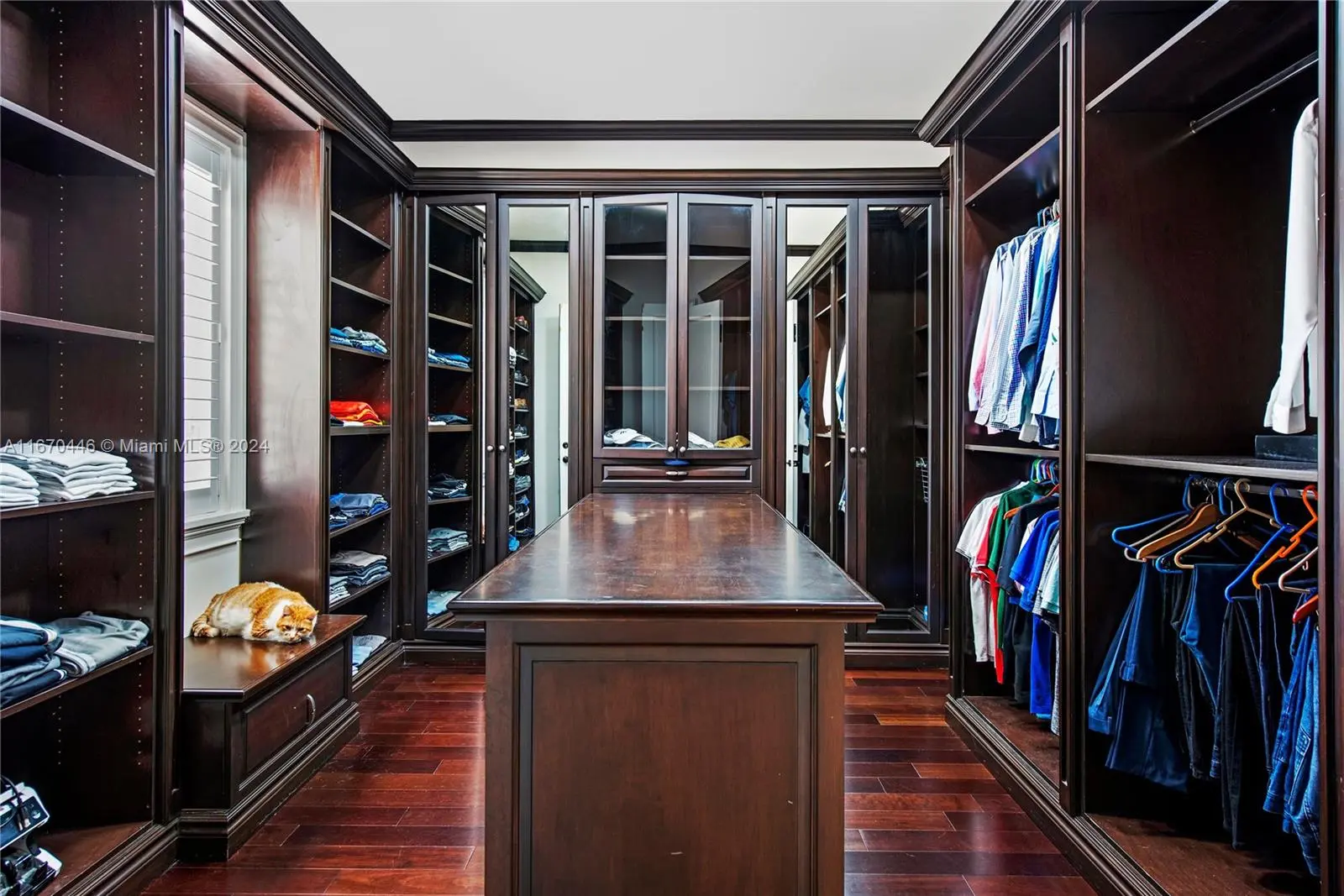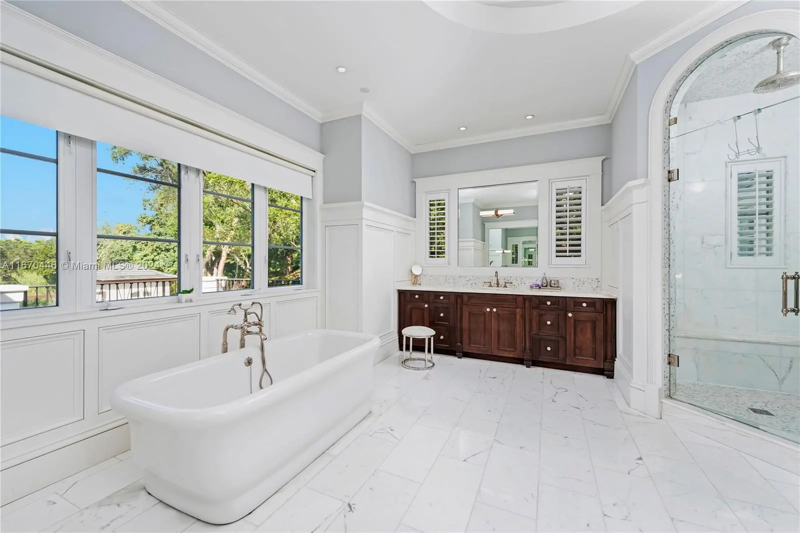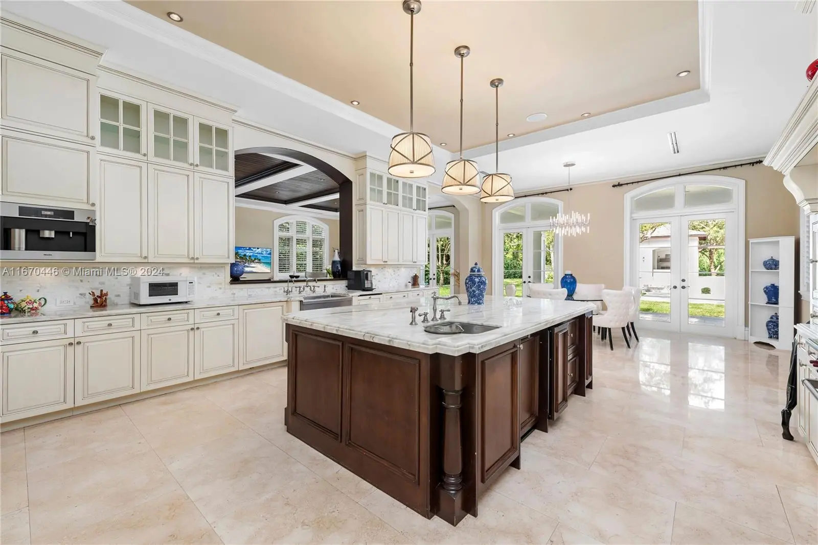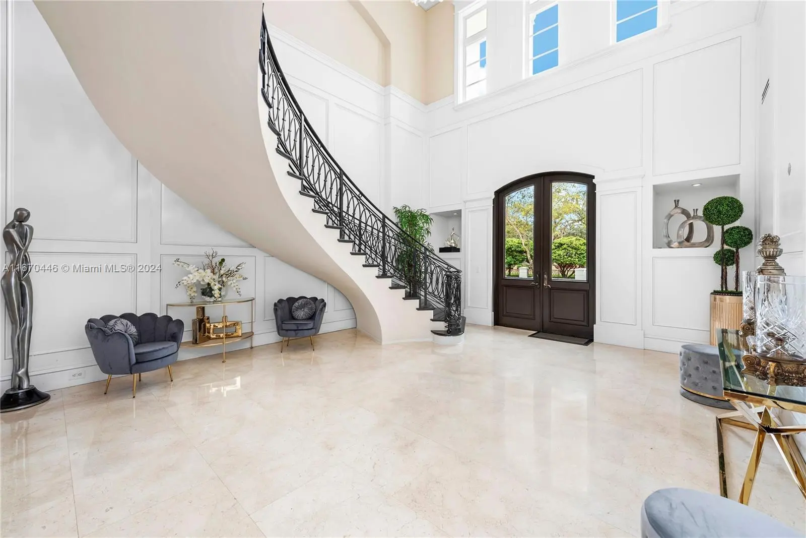 Palatial Neoclassical Estate on 1.2 park-like acres in guard-gated Snapper Creek Lakes! A perfect blend of classic and modern design, this entertainer's dream features an enormous entertainment wing with bar, media room, billiards room, and wood-paneled office. A separate wing is comprised of a movie theater and a private guest suite. Upstairs, you'll find 5 large bedrooms and the 4000sf master wing w/ gym (could be 9th bedroom), dual closets, luxurious master bath, large sitting room/office, and expansive terraces. Resort-style amenities include pool, summer kitchen, and cabana bath w/outdoor shower. Also, separate staff/in-law quarters and oversized garages for 6 cars. Includes access to a 40ft boat slip in Snapper Creek Marina.