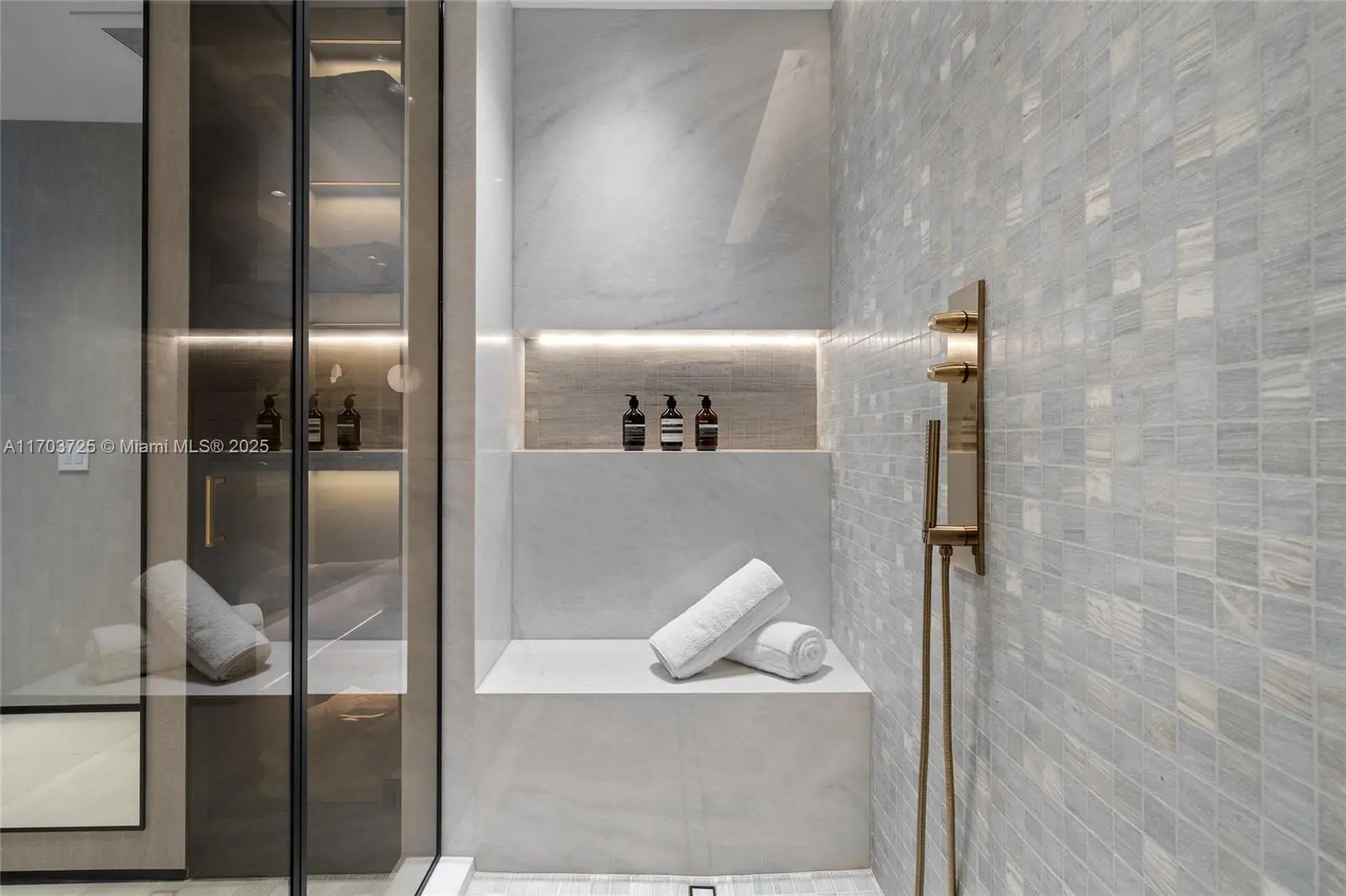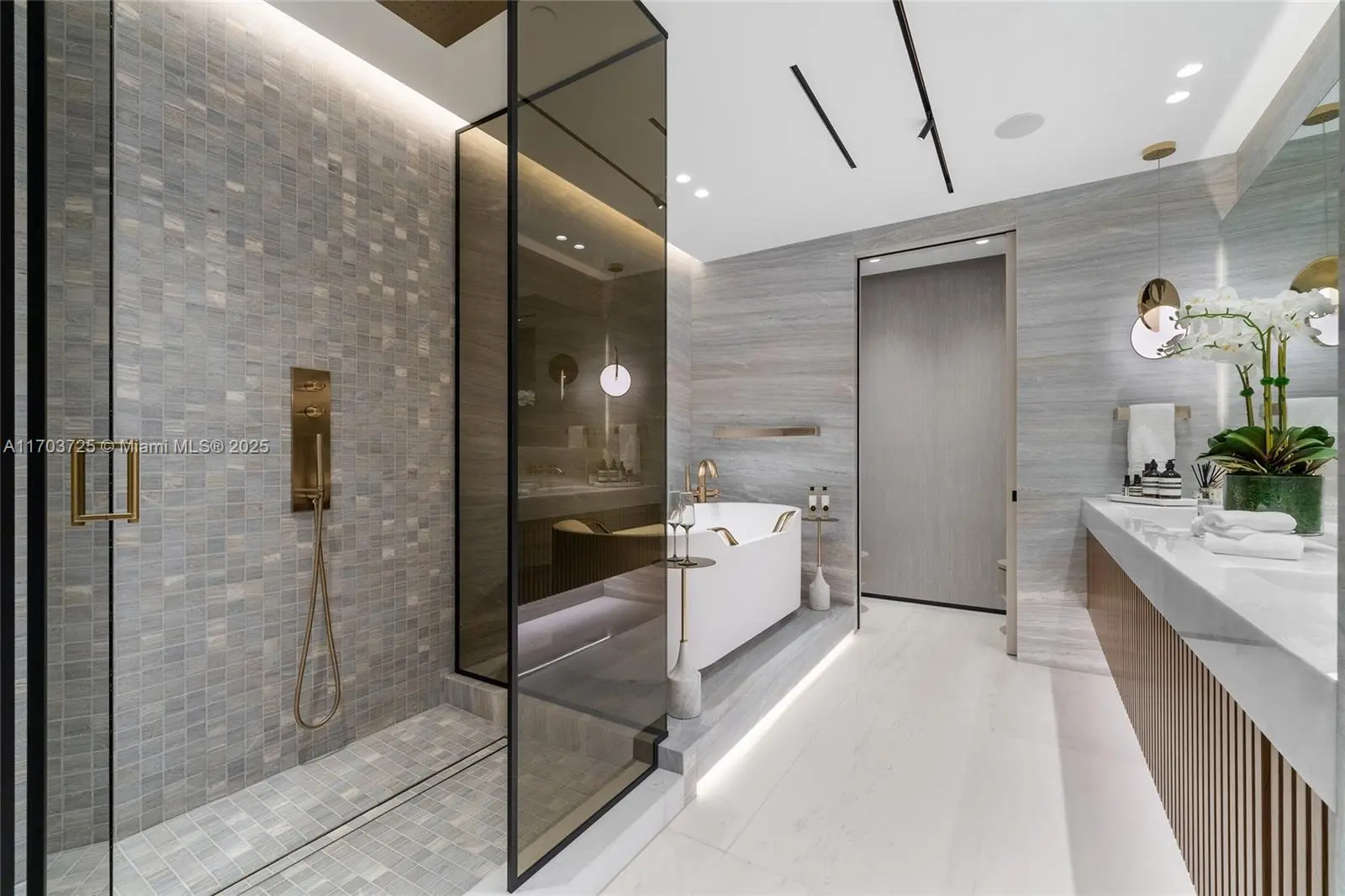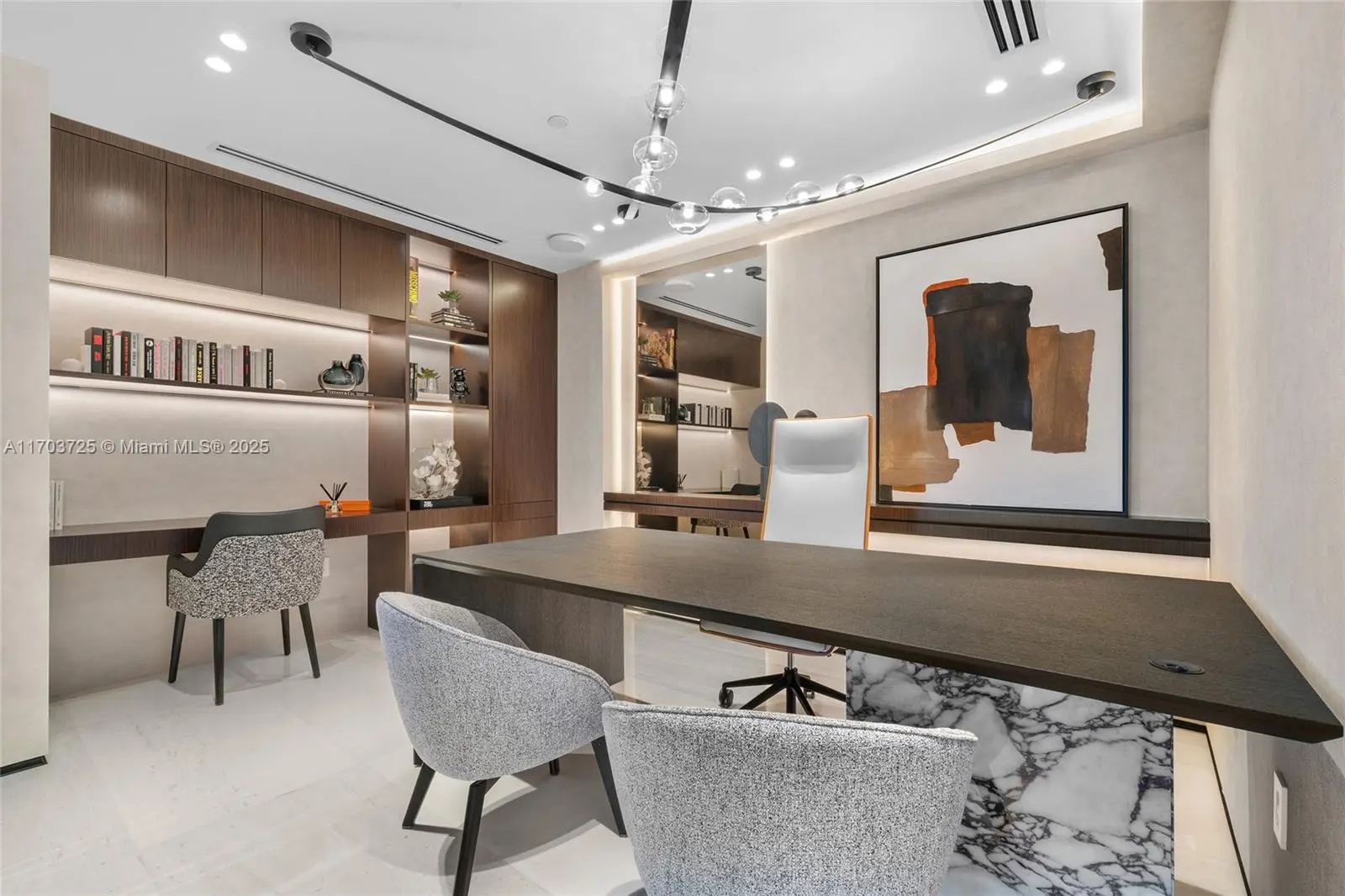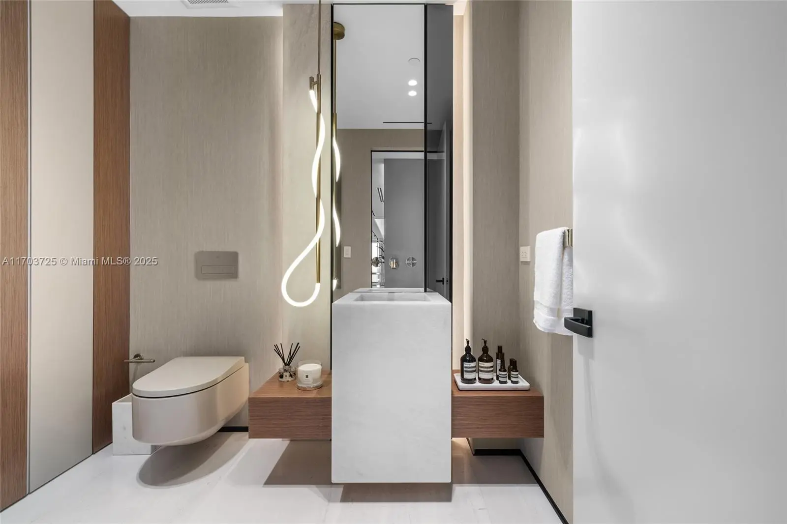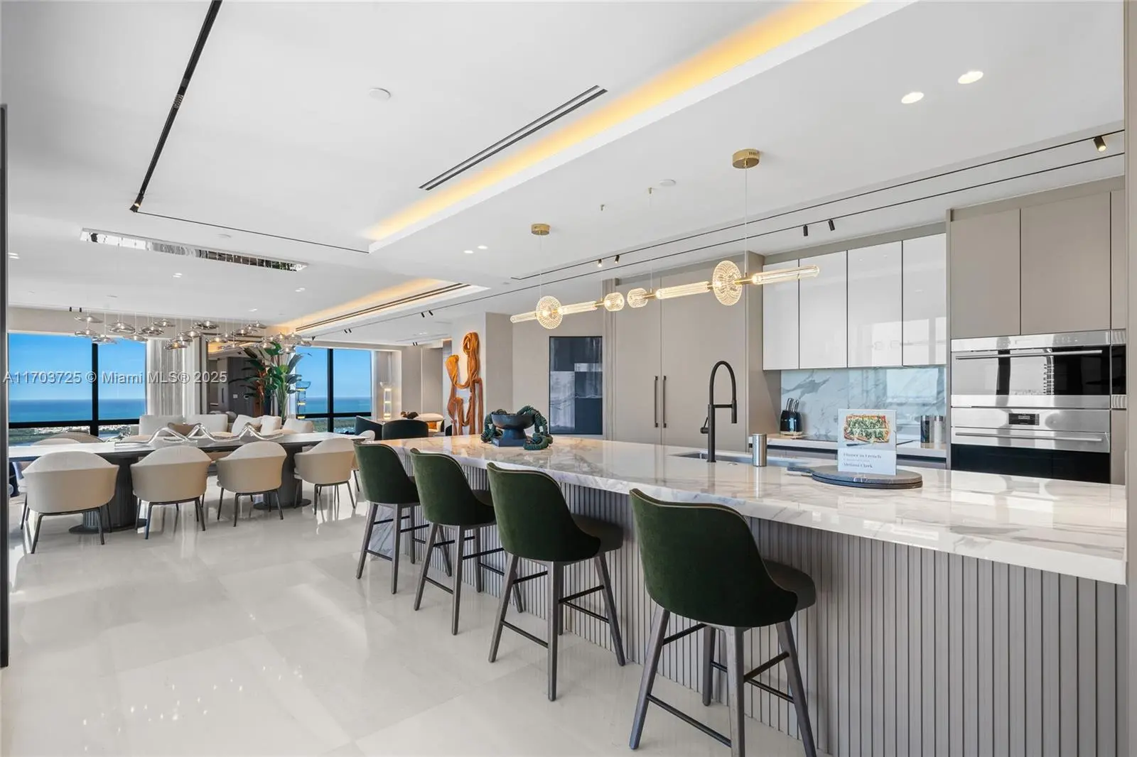 Welcome to Lower Penthouse 66. This fully renovated turnkey masterpiece in the prestigious Four Seasons Residences is situated on the 66th floor, in the building’s most desirable lines, D & E. This residence seamlessly merges two units, offering panoramic ocean and city views from every room. The interiors exude sophistication with Bianco Ondulato marble floors and an Ornare kitchen featuring Calacatta countertops. Furnished by Fendi, Minotti, and Luxury Living. Spa-like bathrooms with Armani fixtures, LED-lit recessed baseboards, gunmetal accents, and smart home technology. Ideal for entertaining, the home includes a lounge, bar, private office, family room, and maid’s quarters. World-class amenities include an Equinox fitness center, spa, multiple pools, and 24-hour concierge services. Furniture and décor are included in the sale.