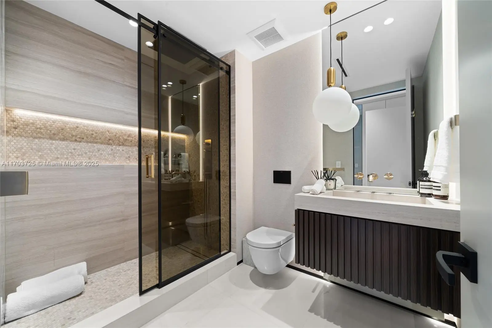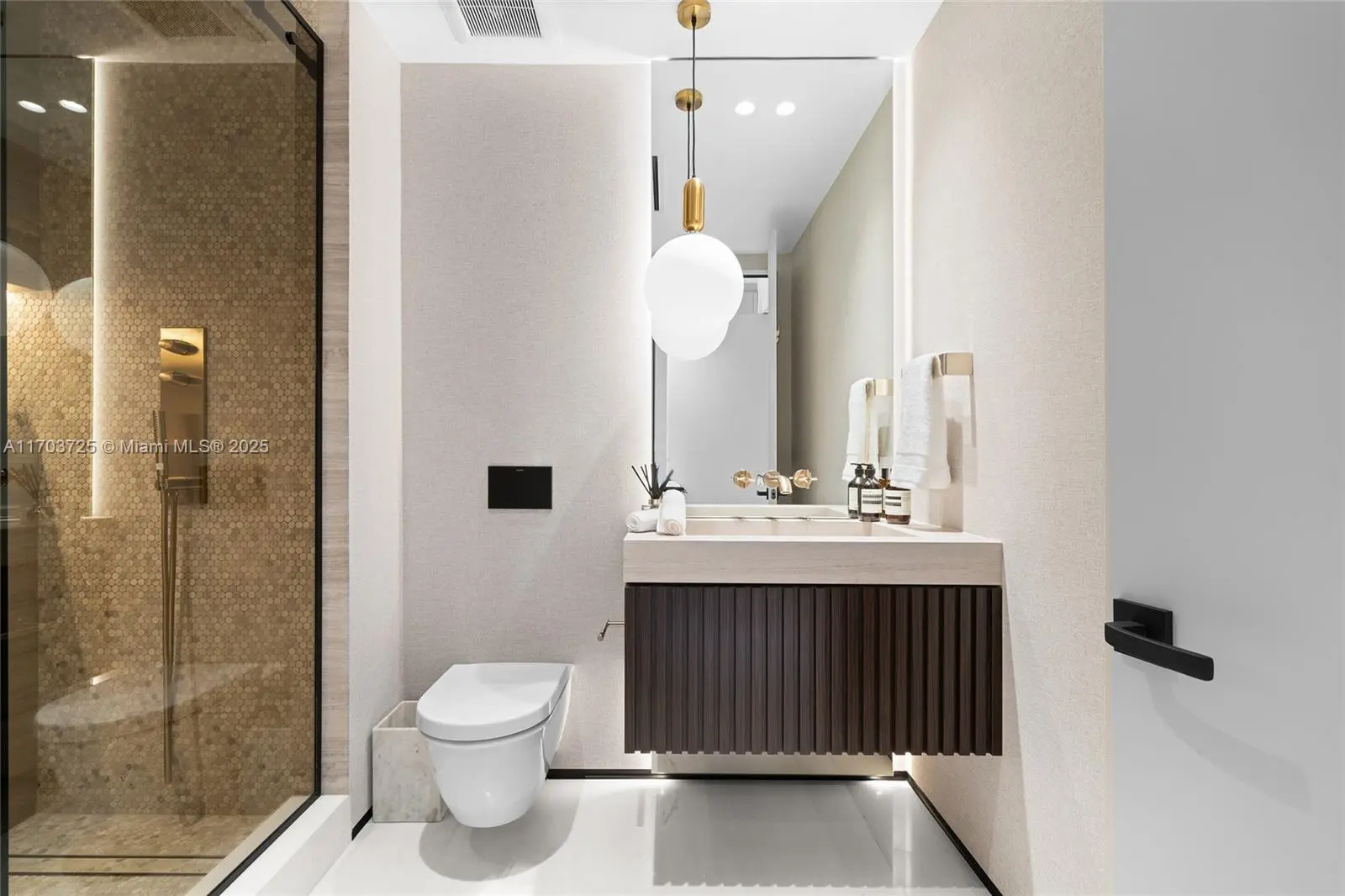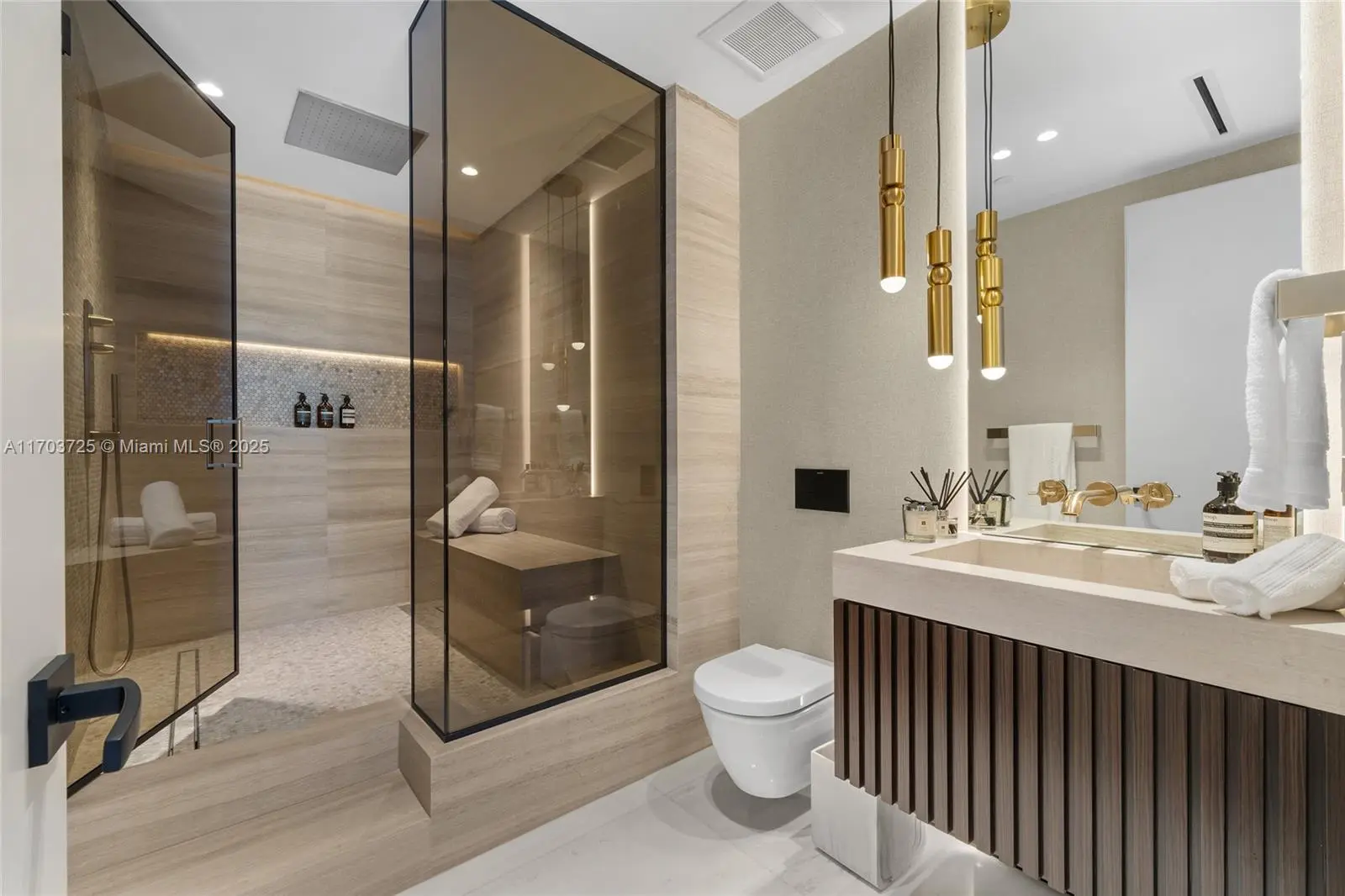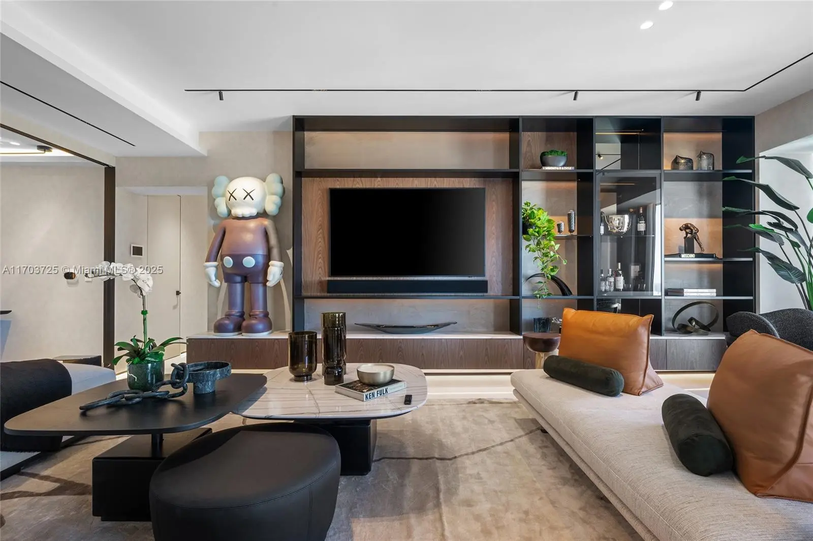 Welcome to Lower Penthouse 66. This fully renovated turnkey masterpiece in the prestigious Four Seasons Residences is situated on the 66th floor, in the building’s most desirable lines, D & E. This residence seamlessly merges two units, offering panoramic ocean and city views from every room. The interiors exude sophistication with Bianco Ondulato marble floors and an Ornare kitchen featuring Calacatta countertops. Furnished by Fendi, Minotti, and Luxury Living. Spa-like bathrooms with Armani fixtures, LED-lit recessed baseboards, gunmetal accents, and smart home technology. Ideal for entertaining, the home includes a lounge, bar, private office, family room, and maid’s quarters. World-class amenities include an Equinox fitness center, spa, multiple pools, and 24-hour concierge services. Furniture and décor are included in the sale.