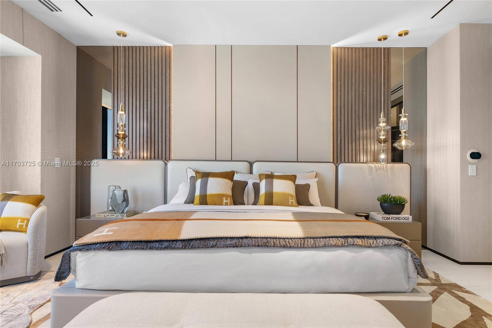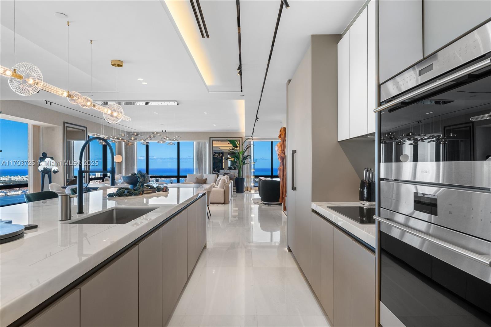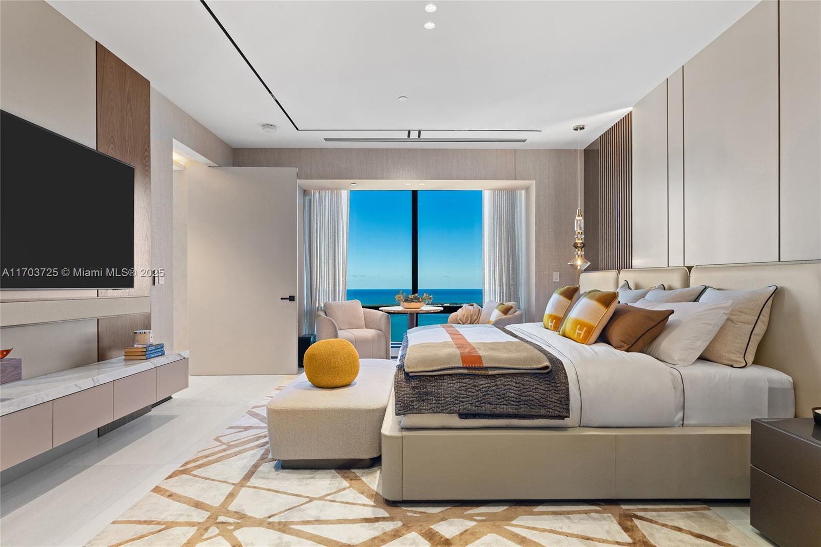 Welcome to Lower Penthouse 66. This fully renovated turnkey masterpiece in the prestigious Four Seasons Residences is situated on the 66th floor, in the building’s most desirable lines, D & E. This residence seamlessly merges two units, offering panoramic ocean and city views from every room. The interiors exude sophistication with Bianco Ondulato marble floors and an Ornare kitchen featuring Calacatta countertops. Furnished by Fendi, Minotti, and Luxury Living. Spa-like bathrooms with Armani fixtures, LED-lit recessed baseboards, gunmetal accents, and smart home technology. Ideal for entertaining, the home includes a lounge, bar, private office, family room, and maid’s quarters. World-class amenities include an Equinox fitness center, spa, multiple pools, and 24-hour concierge services