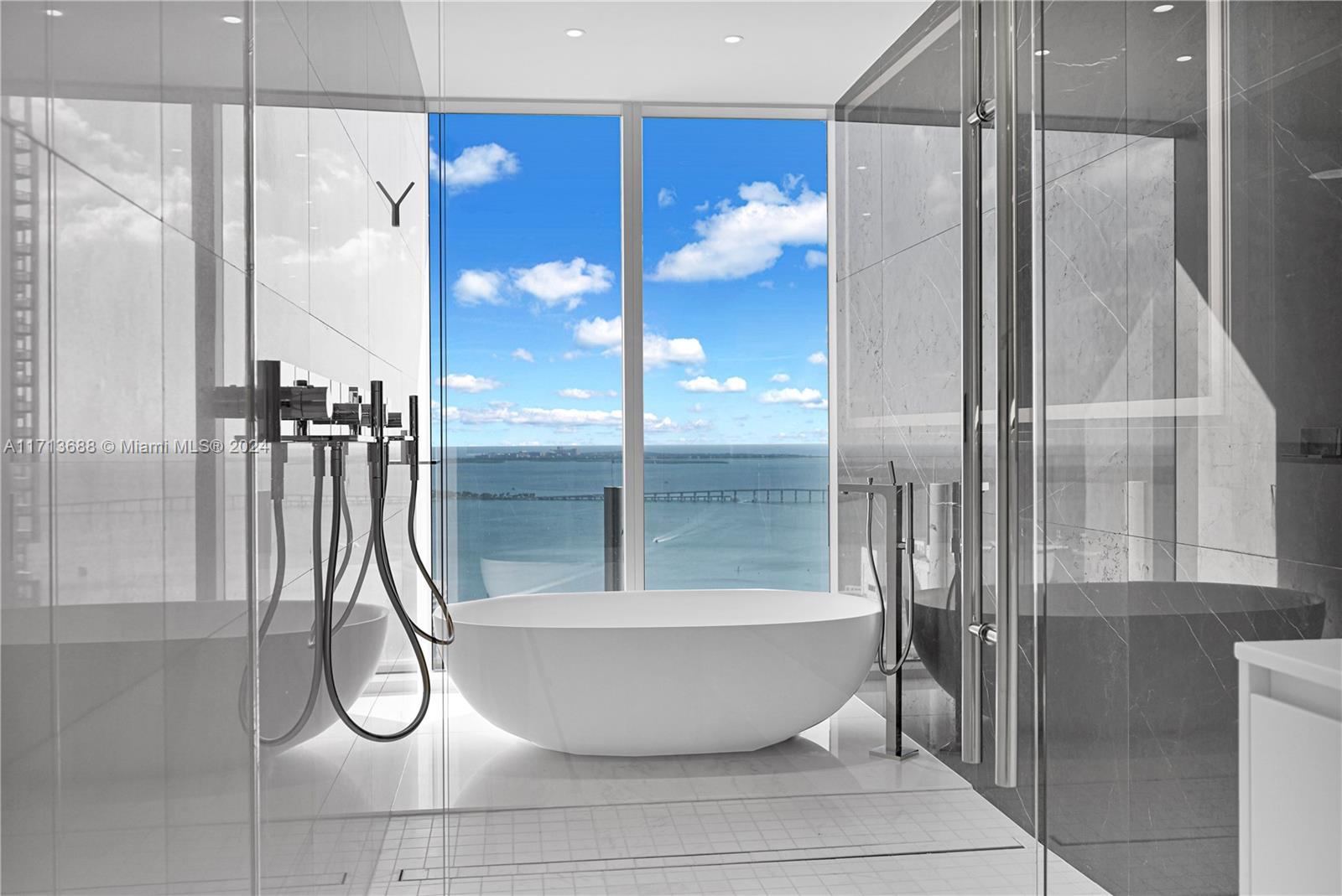 Discover luxury living in this exceptional 3-bedroom + den, 4.5-bathroom residence on the 43rd floor of the newly completed Aston Martin Residences in Downtown Miami. With breathtaking panoramic views of Biscayne Bay and the city skyline, this flow-through unit offers seamless living and dining spaces. The gourmet kitchen is outfitted with top-tier Gaggenau appliances, while the separate staff quarters feature a full bathroom and laundry area. The expansive layout includes a family room, living room, and den, perfect for both relaxation and entertaining. Residents enjoy exclusive access to world-class amenities, including indoor and outdoor pools, a two-story fitness center, spa, golf simulator, art gallery, and more, all in the heart of Miami’s vibrant downtown.