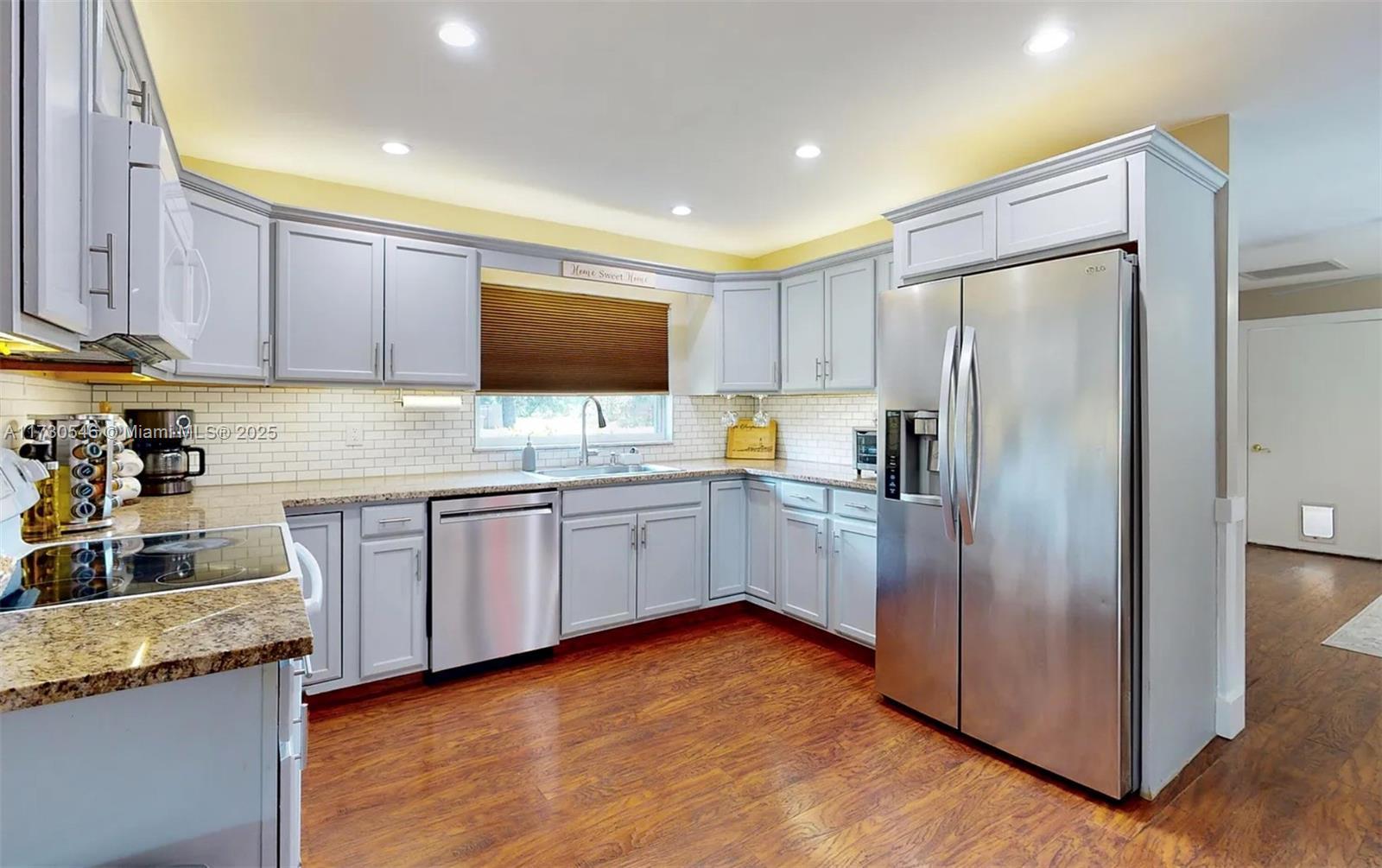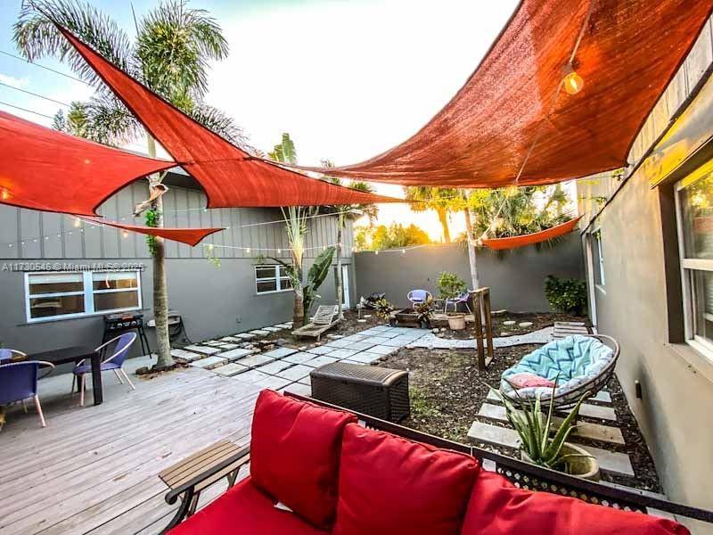 Very unique opportunity to acquire a home with 4 bedrooms 2 bathrooms- garage converted to the 4th bedroom. In addition, this home offers an extra room that can be used as 5th bedroom, office, kids play room, den, etc. This home sits on 1/3 of an acre and features a large enclosed courtyard area made perfect for outdoor eating and cooking, entertaining and many other activities. In addition, this home has updated kitchen with stainless steal appliances, granite counters, updated cabinetry and custom carpentry finishes. Lots of natural light throughout the home and its spacious open layout dining and living room areas. RV, boats, other large vehicles and more are welcome. No HOA. Low risk flood zone. Located a short drive to retail, shops, restaurants, beaches and more.