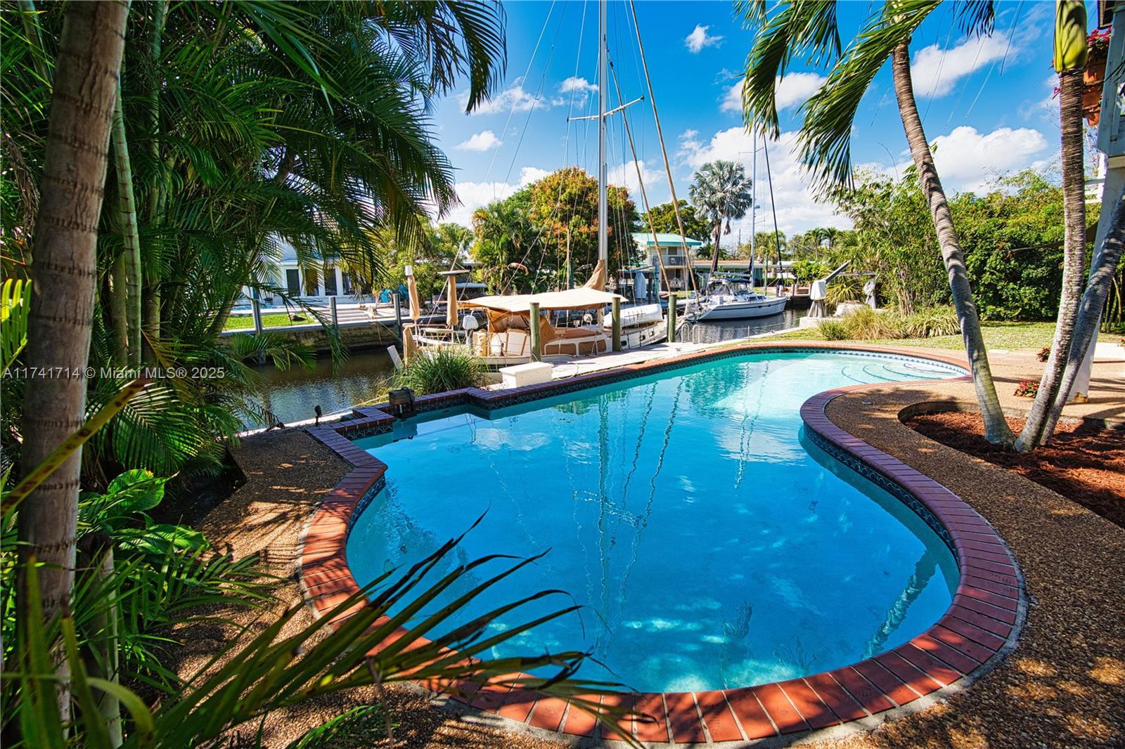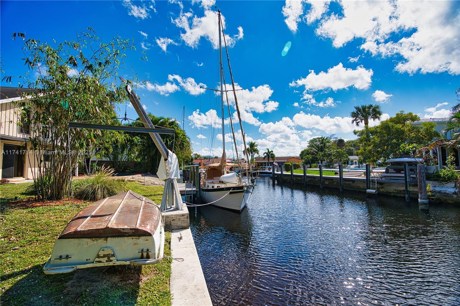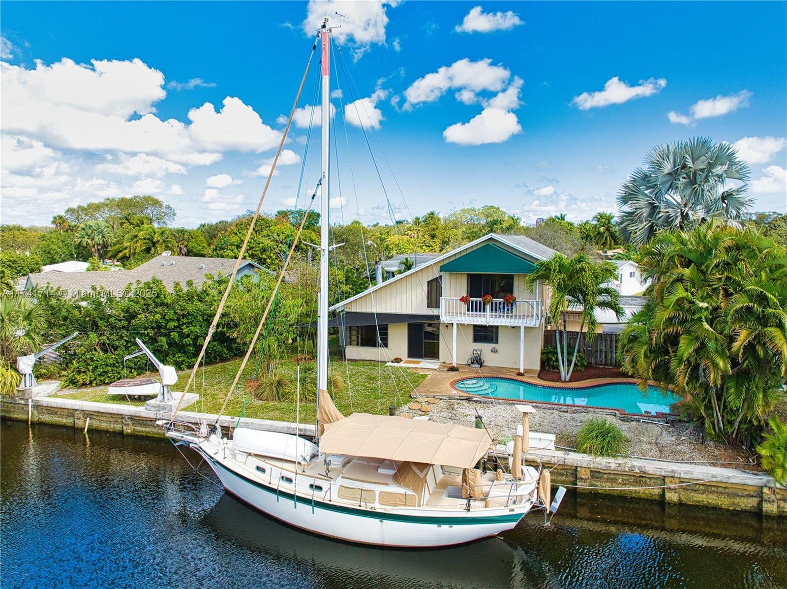Boater’s Dream, 3 Bedroom–2.5 Bath Waterfront Cul de Sac Pool home on a Deepwater canal off the New River South Fork, accommodates Fixed Keel Sailboats with a 105 Ft. Seawall in Shady Banks-No HOA neighborhood. No Fixed Bridges direct ocean access to the Stranahan River Inlet, with nearby turning basin. Dock features a 30/50 amp marine power pedestal, 2 boat davits each rated at 4K pounds. Plumbing is PVC piping. Private security system wired with 4 cameras. Open Floor Plan with a beautiful High Vaulted ceiling, massive Cedar Beams, Pecky Cypress walls. Lush tropical landscaping on this large 8,362 sq ft lot. Conveniently located to Hortt Park, Bill Keith Preserve, Downtown and Ft. Lauderdale airport, Las Olas, I-95, I-595, Florida Turnpike. Being sold turnkey. Shady Banks-Paradise Awaits!