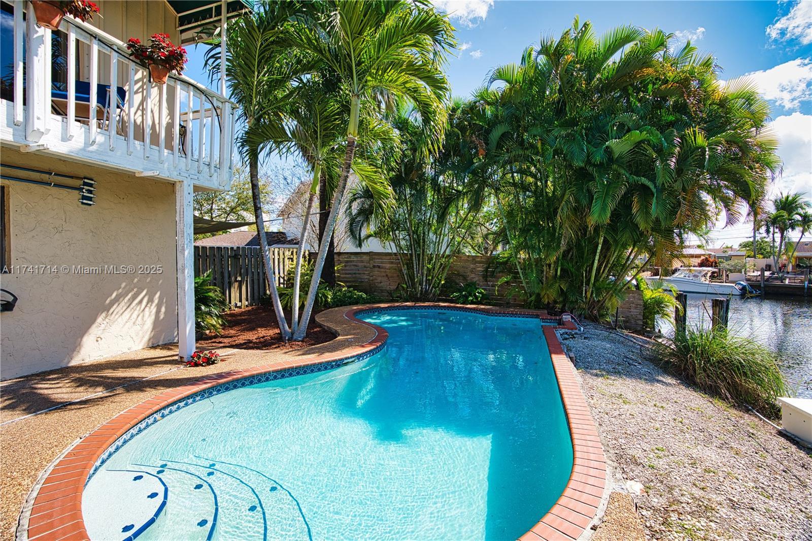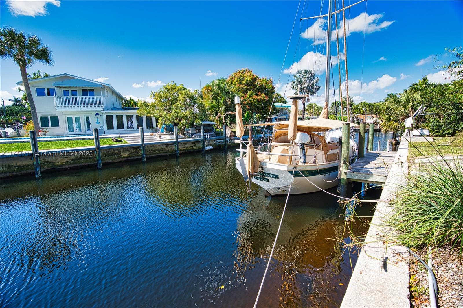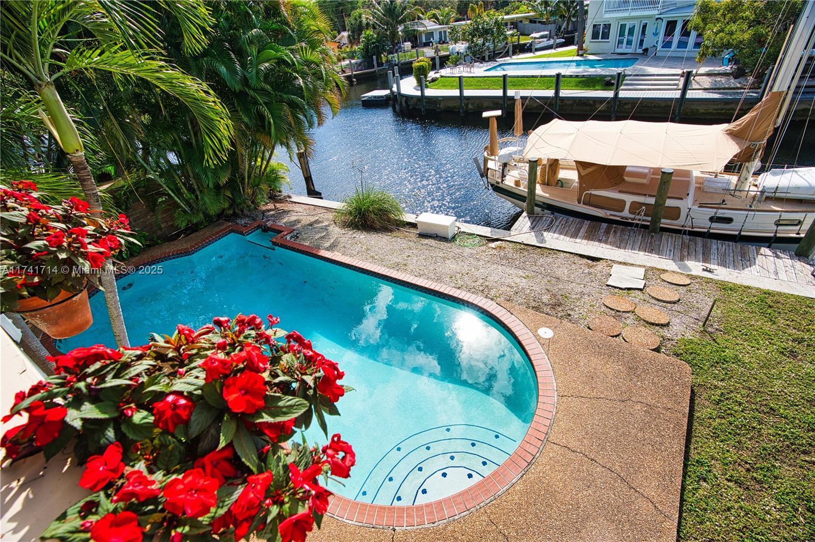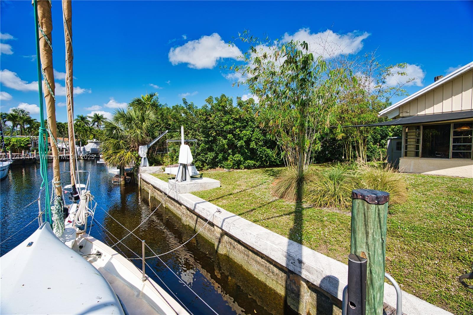 Boater’s Dream, 3 Bedroom–2.5 Bath Waterfront Cul de Sac Pool home on a Deepwater canal off the New River South Fork, accommodates Fixed Keel Sailboats with a 105 Ft. Seawall in Shady Banks-No HOA neighborhood. No Fixed Bridges direct ocean access to the Stranahan River Inlet, with nearby turning basin. Dock features a 30/50 amp marine power pedestal, 2 boat davits each rated at 4K pounds. Plumbing is PVC piping. Private security system wired with 4 cameras. Open Floor Plan with a beautiful High Vaulted ceiling, massive Cedar Beams, Pecky Cypress walls. Lush tropical landscaping on this large 8,362 sq ft lot. Conveniently located to Hortt Park, Bill Keith Preserve, Downtown and Ft. Lauderdale airport, Las Olas, I-95, I-595, Florida Turnpike. Being sold turnkey. Shady Banks-Paradise Awaits!