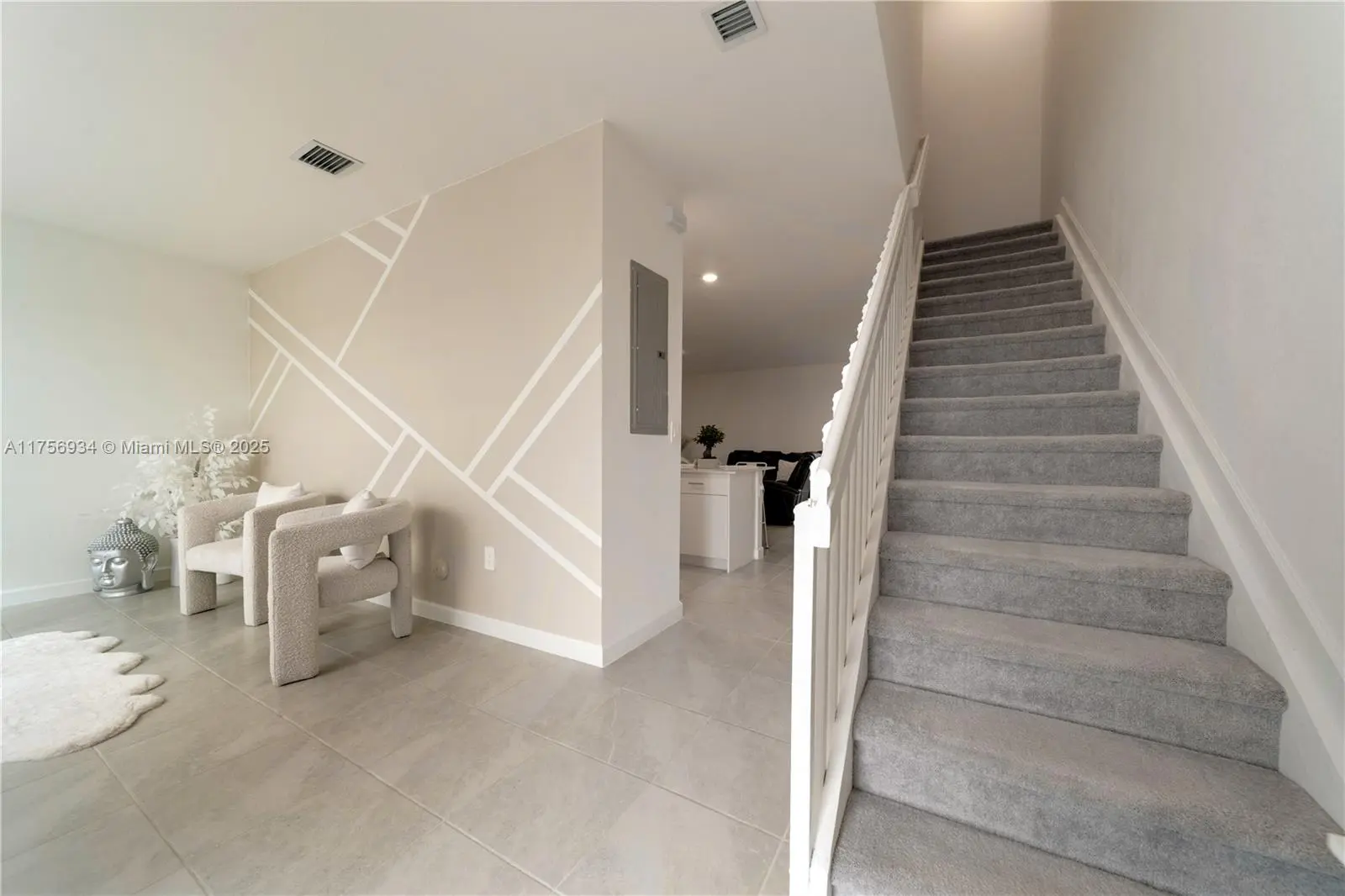 This meticulously maintained townhouse is a refined living experience within a tranquil community. Featuring three bedrooms and two and a half bathrooms. The residence provides ample space for comfortable living. The ground level has seamless tiled flooring, enhancing both durability and an aesthetic appeal. The kitchen showcases modern stainless-steel appliances. The second floor has carpeting, creating a warm inviting home. The home has impact windows and doors, ensuring security and energy efficiency. A convenient one-car garage, and driveway can accommodate up to three vehicles. Imagine enjoying peaceful mornings on your patio or going a short distance to relax at the community pool; all while still living near local shops and amenities.