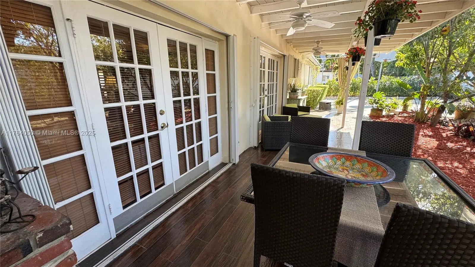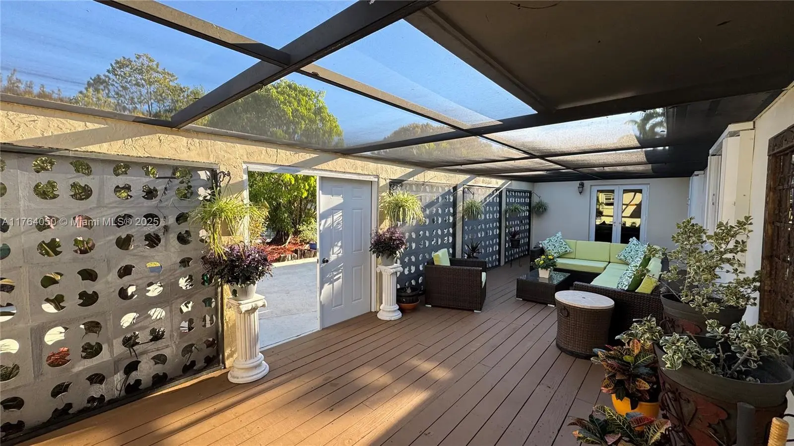 Deck, Enclosed Porch, Fence, Fruit Trees, Security/High Impact Doors, Lighting, Patio, Storm/Security Shutters