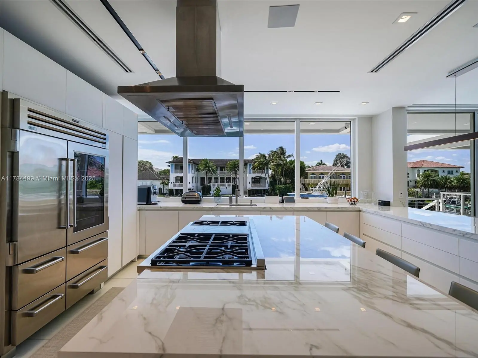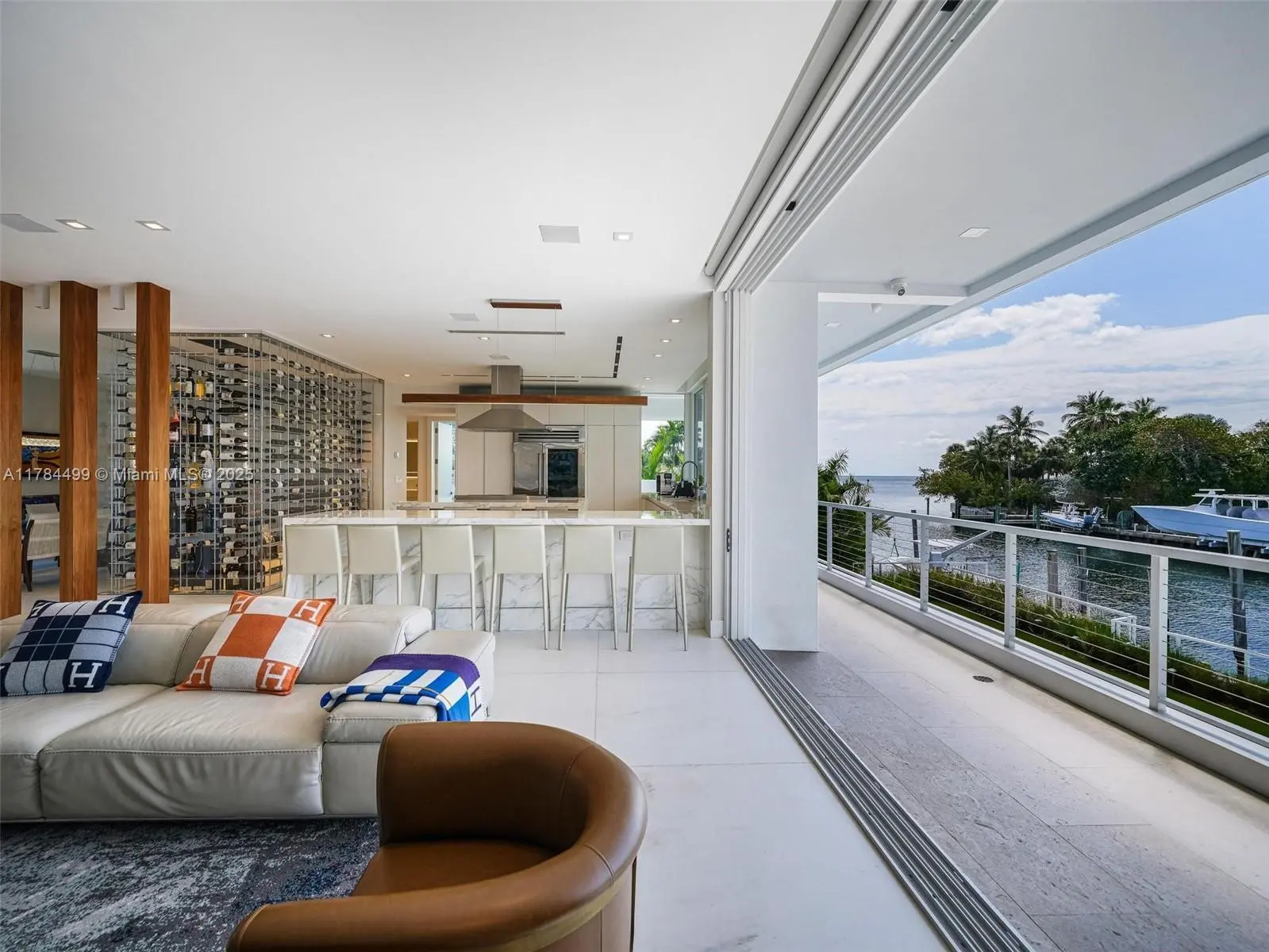 Waterfront luxury reimagined with 100’ of frontage & a 15,000 lb boat lift for up to a 40’ vessel. This 3-story, 9,911 SF smart home blends sleek Italian design with cutting-edge tech. The first floor features a private staff suite, gym, steam spa, staff kitchen, bar, full bath, and a 2,500-bottle wine cellar. The second level stuns with 48x48 marble floors, chef’s kitchen with Miele, Subzero, Italian glass cabinetry, 2 dishwashers, 325-bottle wine cellar, plus office, laundry, and ensuite bedrooms. Upstairs, the primary suite is joined by two additional ensuite bedrooms and a second living room. Fully automated smart home with Control4, 19 security cameras, Trane A/C, ESW impact windows, electric blinds, custom closets, dual kitchens, dual laundries, and A/C 2-car garage. Open Bay Views!
