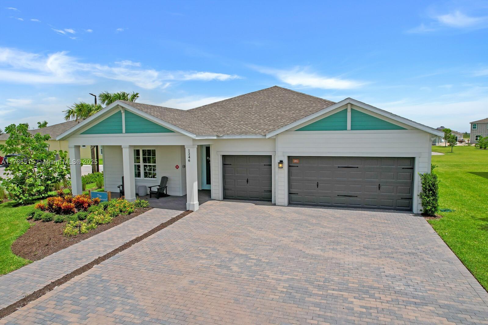 Home for the Holidays!! WHY WAIT TO BUILD....MOVE IN NOW!!! Best Deal in Arden!!Ready for Quick Close. 4 BD+Flex room/3 BA/3CG. IMPACT WINDOWS & DOORS. Sandalwood-former Ryan Homes model. $40,000+ in upgrades.Upgrades Incl: : Elevation, Gourmet Island Quartz Kitchen, Designer Flooring, Glass Front Door, Refrigerator/Washer/Dryer, Laundry Rm Cabinets, Tray Ceiling Owners Suite,LED Lights, Premium 1/4 acre lot. Spectacular floor plan w/ great room, dining area, flex room, luxurious owner's suite w/ double vanities, HUGE walk-in closet, full bathrm btwn 2 bedrms, 1 ensuite bedroom. Resort-style Amenities: Gated "Agrihood" community, trails, kayaking, fishing, soccer, tennis, pickleball, spectacular clubhouse w/ social spaces, 2-story pool, fitness , coffee bar, lounge.