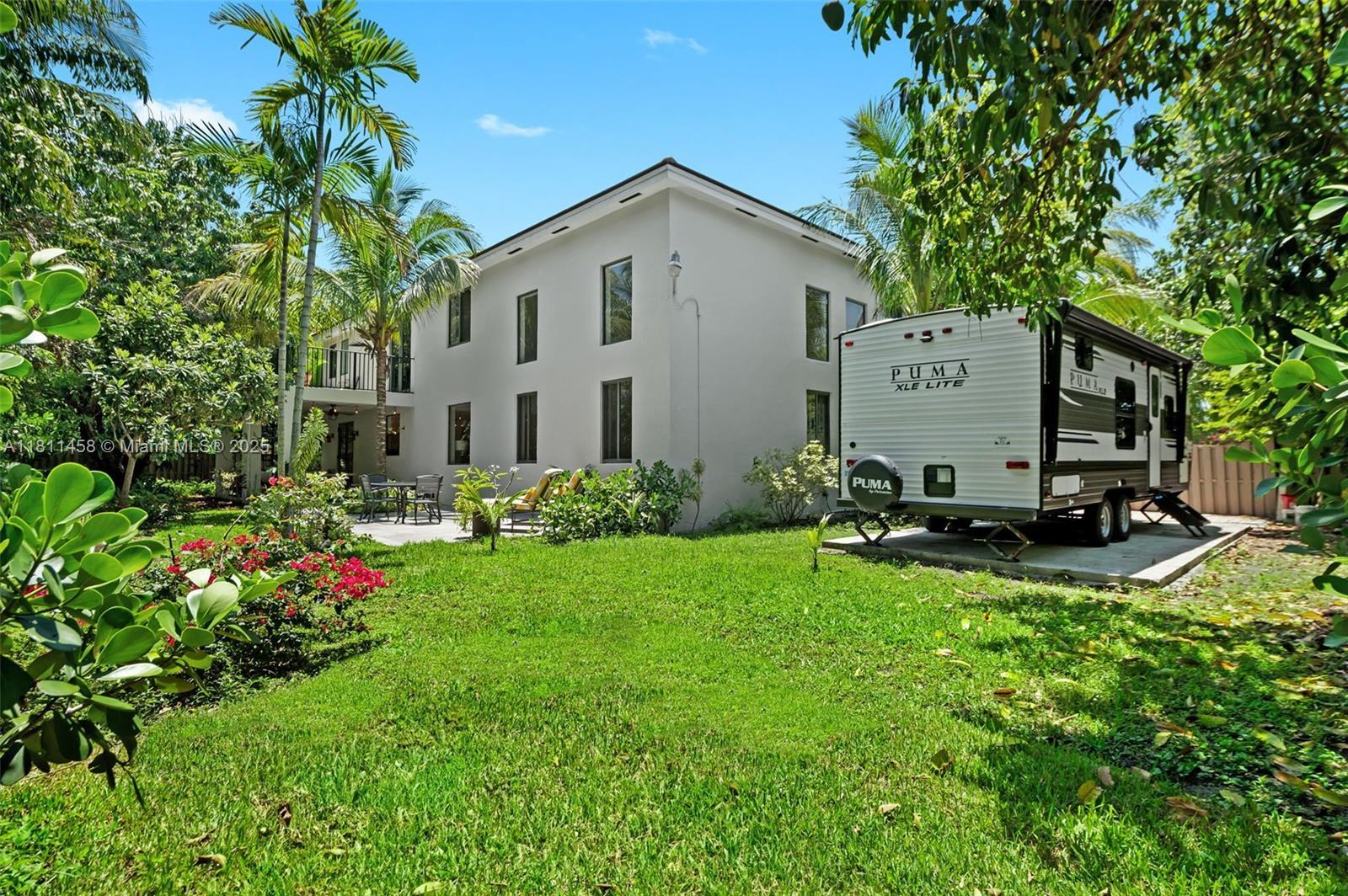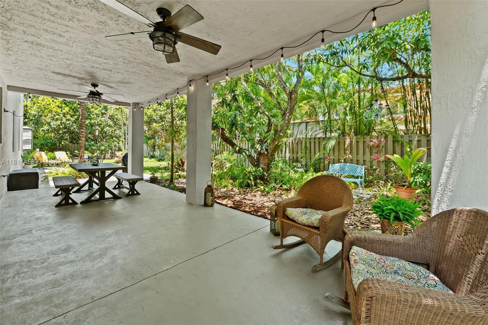 Beautiful lush tropical oasis surrounding this 5/3.5 home w/guest house & 2 car garage. This rare model courtyard home is located in the Groves at Old Cutler gated community. Nicely maintained 2-story home has new roof, updated bathrooms, impact windows & doors. Main living room with a grand staircase & 19ft high ceiling has lots of natural light. XL primary suite has sitting area, 2 walk-in closets, lg walk-in shower w/tub, double vanities & water closet. Large balcony off the primary w/spiral staircase takes you to the lush backyard with a covered patio, concrete slab for recreational vehicles, many fruit trees and room for a pool. Charming guest house has full bath & walk-in closet. Large yard is great for entertaining. Welcome to your new home!