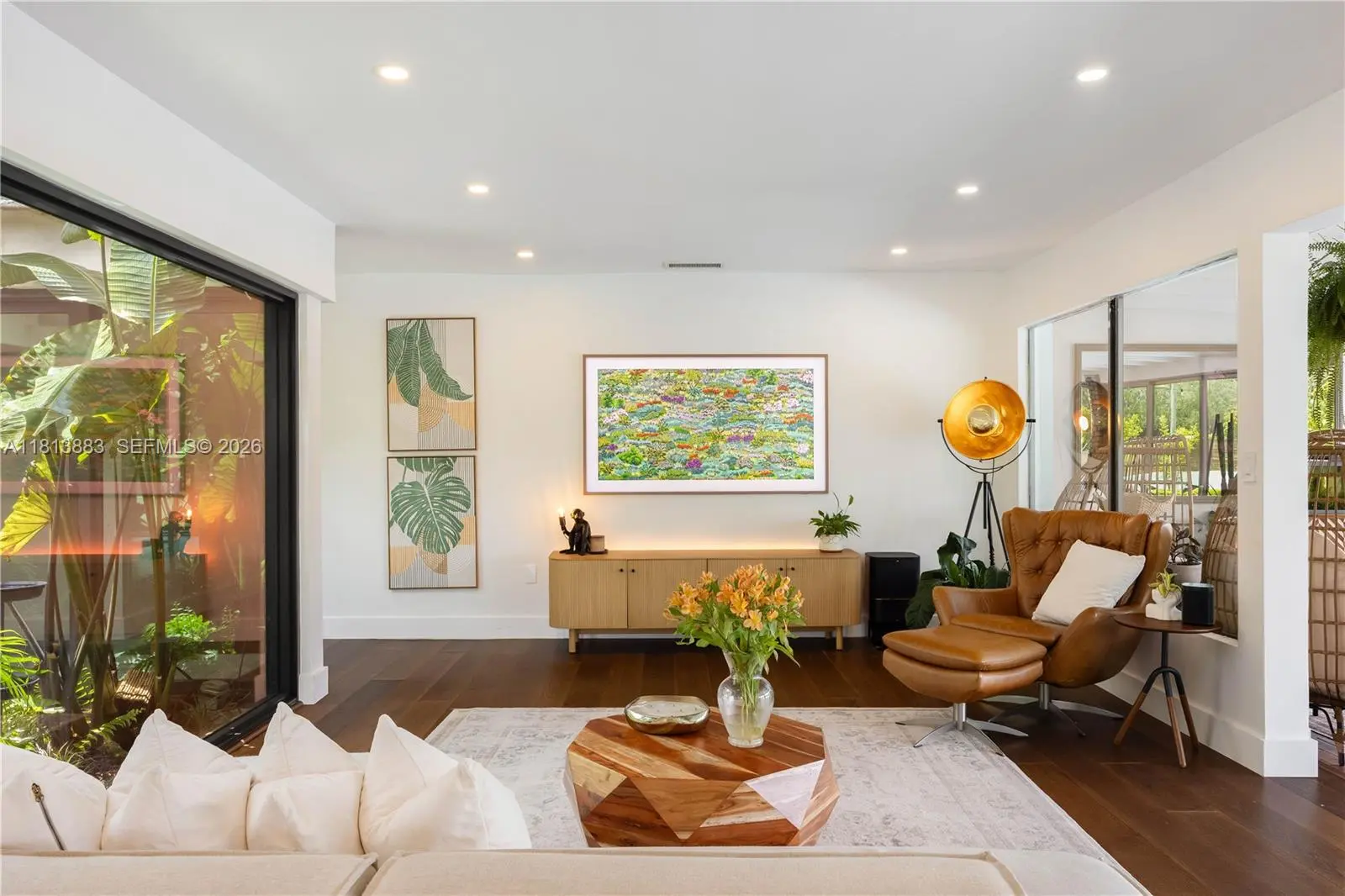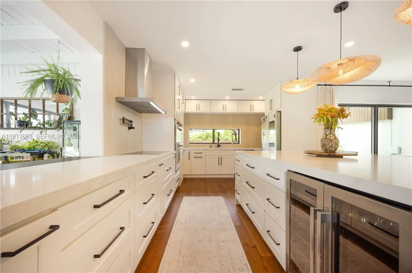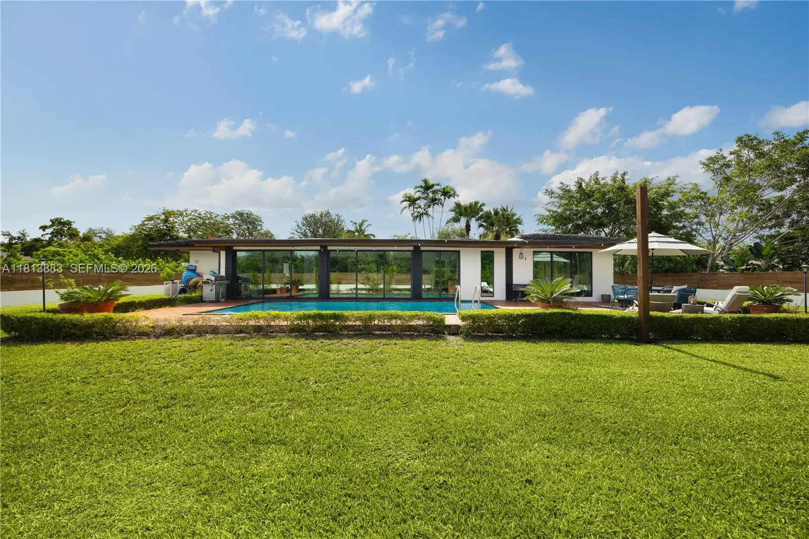Meticulously renovated and truly turnkey, this 4-bedroom + office + TV room, 3.5-bath pool home sits on a fully fenced 25,353 SF cul-de-sac lot in the highly sought-after Baptist Hospital neighborhood. Gated for privacy and surrounded by lush landscaping, the home welcomes you with a tranquil koi pond and expansive circular driveway. Inside, a dramatic atrium courtyard fills the living spaces with natural light and tropical charm. The home features multiple living and dining areas, a custom-designed office, a fully reimagined chef’s kitchen with high end appliances, oversized eat-in island with storage, hidden walk in butler’s pantry, and a sleek laundry room. All three full bathrooms have been rebuilt with high-end finishes. Major upgrades include new hurricane-impact windows and doors (including garage), all-new plumbing and electrical, new ductwork, insulation, HVAC system, Ethernet wiring to multiple points throughout the home, smart lighting, and custom paneling. Outdoors, enjoy a resurfaced pool, landscape lighting, fruit tree grove, koi pond, and total privacy. All major systems replaced within the past 2 years. Move-in ready and built to the highest standard.