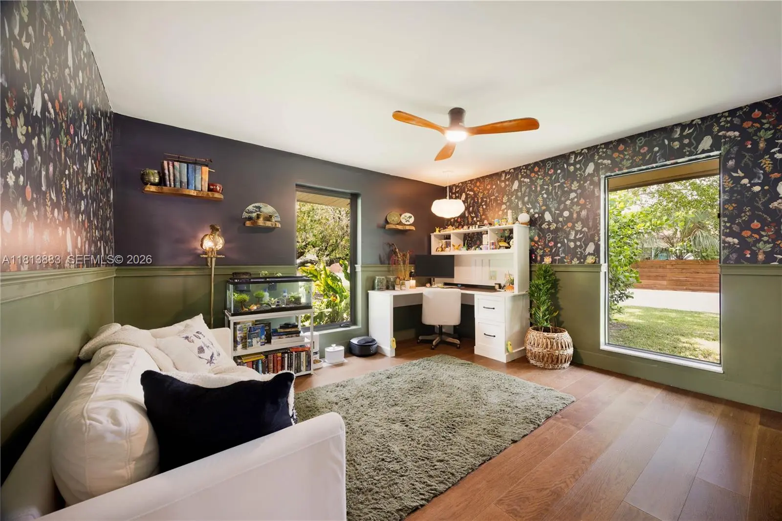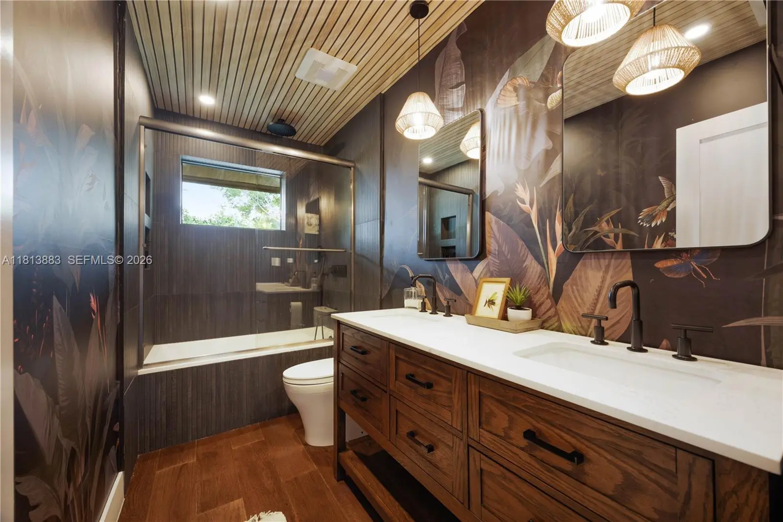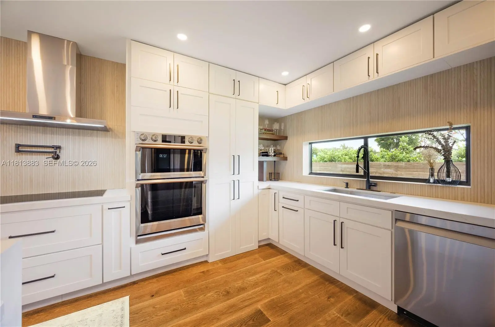 Meticulously renovated and truly turnkey, this 4-bedroom + office + TV room, 3.5-bath pool home sits on a fully fenced 25,353 SF cul-de-sac lot in the highly sought-after Baptist Hospital neighborhood. Gated for privacy and surrounded by lush landscaping, the home welcomes you with a tranquil koi pond and expansive circular driveway. Inside, a dramatic atrium courtyard fills the living spaces with natural light and tropical charm. The home features multiple living and dining areas, a custom-designed office, a fully reimagined chef’s kitchen with high end appliances, oversized eat-in island with storage, hidden walk in butler’s pantry, and a sleek laundry room. All three full bathrooms have been rebuilt with high-end finishes. Major upgrades include new hurricane-impact windows and doors (including garage), all-new plumbing and electrical, new ductwork, insulation, HVAC system, Ethernet wiring to multiple points throughout the home, smart lighting, and custom paneling. Outdoors, enjoy a resurfaced pool, landscape lighting, fruit tree grove, koi pond, and total privacy. All major systems replaced within the past 2 years. Move-in ready and built to the highest standard.