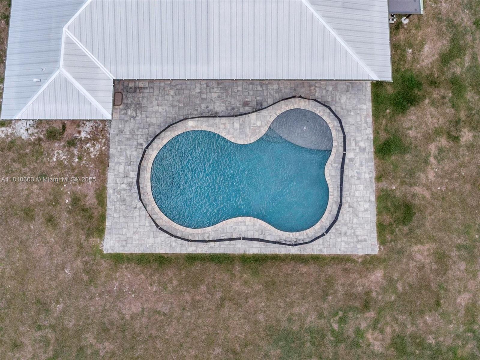 Built in 2022, fully fenced 1.29 acres on canal. Total 3434 sq ft with 2620 under air. Hurricane impact windows and doors. Bright and airy vaulted great room with wood-look tile. Spacious kitchen with LG SS appliances, apron sink, granite countertops, and 14-foot island. Oversized master has tray ceiling and walk-in closet with built-in organizers and dresser. Master bath has private water closet, dual vanities, and dual shower heads. Features whole home Reverse Osmosis filtration system with 500-gallon tank, A/C with Halo UV, Metal roof, spray foam insulation, epoxy garage, pre-wired for exterior cameras, in-wall pest control system, covered back patio with fans, large, heated pool with 6 ft sun shelf. Walking distance to highly rated Elementary & Middle schools.