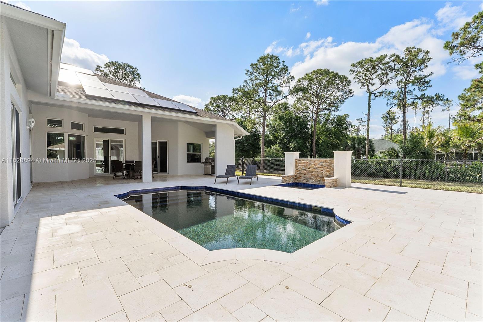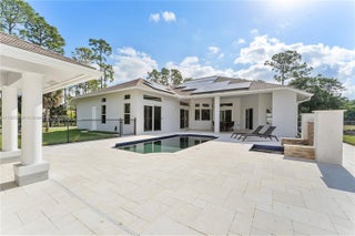 Welcome home to this newer construction, equestrian estate with 4,140 sq ft of living space on more than 2.5 acres of land in a sought-after, horse-friendly community. Main house 4Bed/3Bath plus office. Detached guest house with 1Bed/1Bath, plus den & full kitchen. The layout is designed for both everyday comfort & entertaining, with high ceilings, open-concept design, & lots of natural light. Enjoy the saltwater pool & hot tub. Including a 2-car garage & hurricane impact windows throughout. Incredible upgrade $100K+ solar panel system reducing energy bills. Whether you are an equestrian enthusiast looking to build stables for horses or wanting to enjoy more space in peaceful luxury, this move-in ready estate has it all and is just minutes from local equestrian parks, shopping, & schools.