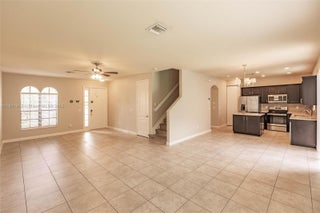 Beautiful 2-story home featuring a striking brick-accented front, shuttered exterior windows, and a driveway with elegant pavers. The front yard landscaped with grass & manicured shrubs while the backyard offers a blank canvas to design your dream outdoor living space. Step inside to tile floors downstairs and lvp floor on the stairs and upstairs living areas. Neutral paint color throughout that complements any decor. Upon entry, you'll find a formal living room perfect for entertaining. The open-concept family room flows seamlessly into the kitchen, featuring an island & stainless steel appliances. All bedrooms are upstairs, have ceilings fans, raised panel doors and are good sized! Thanks for showing this gorgeous home!