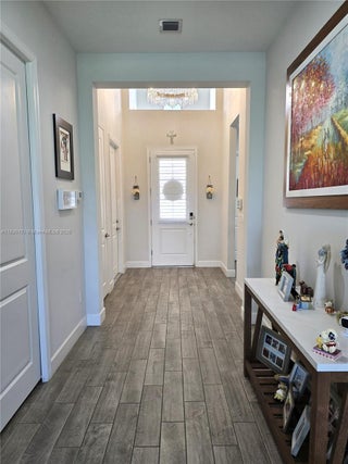 Welcome to this beautiful 3-bedroom, 2-bathroom waterfront home located in the desirable Groves of Westlake community. This well-maintained residence features a spacious eat-in kitchen with quartz countertops, stainless steel appliances, and ample cabinet space. Enjoy upgraded tile flooring throughout, a formal dining area, and generously sized bedrooms. The home also includes hurricane shutters, a standalone A/C unit in the garage, and a gorgeous waterfront view that adds to the serene atmosphere. Conveniently located near parks, shopping, and major roadways. Don’t miss the opportunity to own this exceptional home—schedule your showing today.