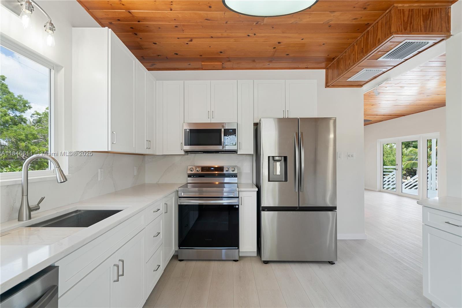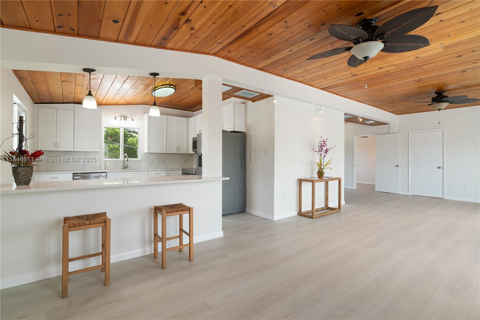Waterfront Island Bungalow with 60' of Deep Water Dock on a wide canal with direct Bay Access. Welcome to the ultimate retreat in the Florida Keys! This recently renovated with new white kitchen, quartz counter tops, stainless steel appliances is ready for immediate occupancy. 3 new beautiful walk-in showers, impact windows and doors and new floors. Beautifully updated 2-bedroom, 2-bath Keys-style home is a true catch—offering 60 feet of concrete dockage with a boat lift and instant access to the bay, just load your gear, drop your lines, and be casting in world-class fishing waters within minutes. Freshly renovated interior with modern comfort with island charm. The open-concept kitchen is brand new, with stylish finishes and functionality for entertaining after a day on the water.