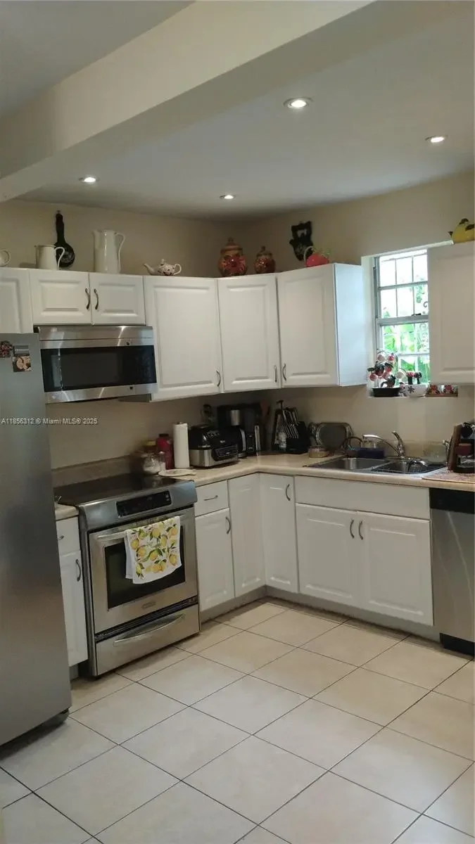 This lovely home features 4 bedrooms, 2 baths, and it also boasts additional room that can be a home office, home gym area, or even a 5th bedroom. The spacious kitchen features a stainless steel appliances, light and bright cabinets and counter top and is enhanced by natural light. Tiled and laminate flooring throughout the home so no need to worry about carpets ! Centrally located minutes to major roads, shops and yet, nestled in serene surroundings. Don't delay, make this home yours today ! Note: The adjacent property/vacant lot area is owned by Miami-Dade therefore it is not included in the sale of this property. Call listing agent for further details.