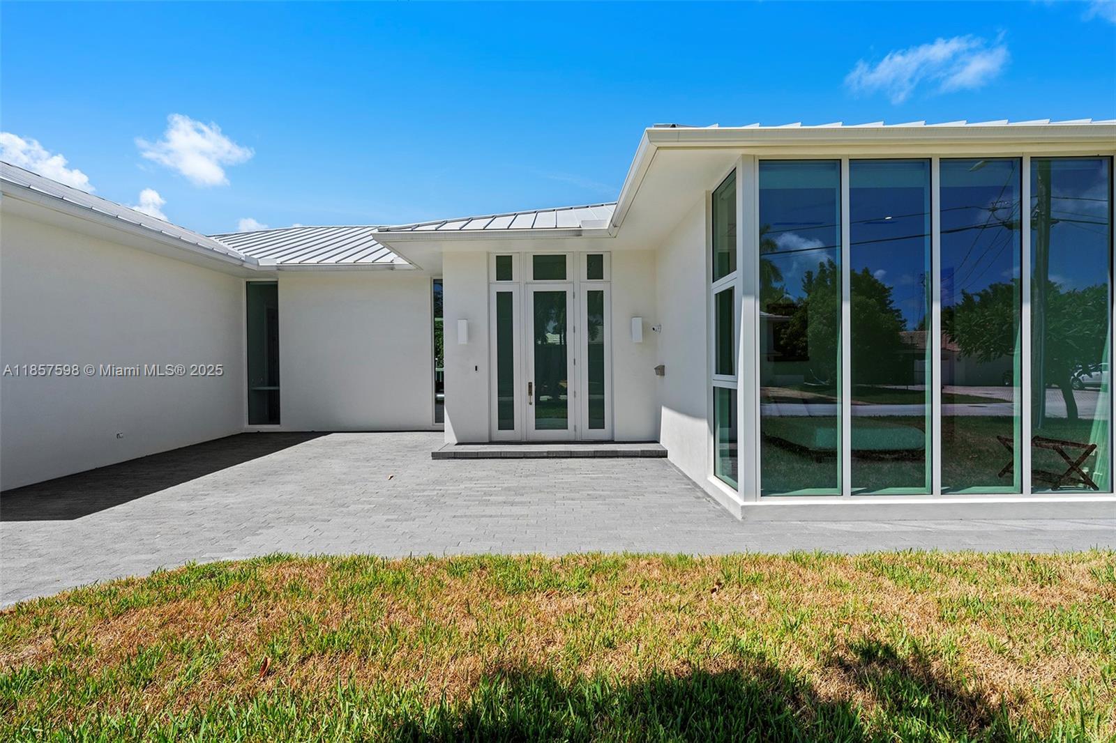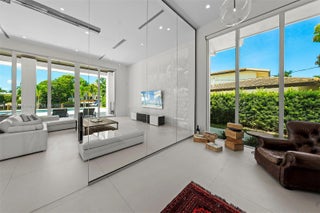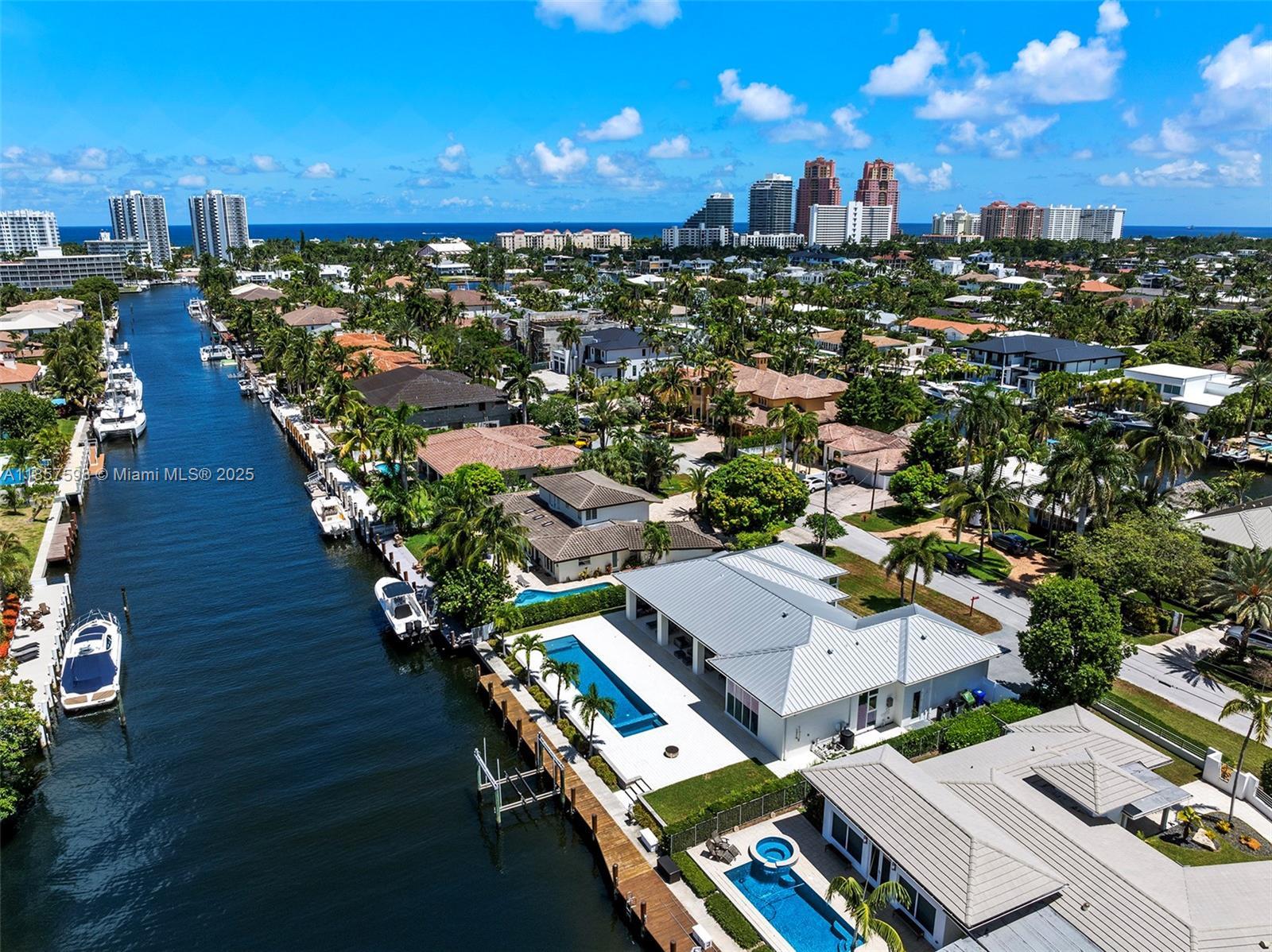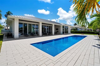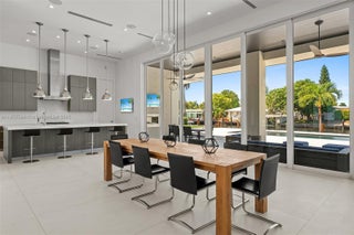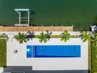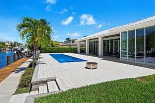 This Coral Ridge residence delivers clean lines, natural light, and a layout designed for impact. Floor-to-ceiling glass walls frame the living spaces, bringing the outdoors in and showcasing 100 feet of prime water frontage. The kitchen anchors the home with bold finishes and a seamless flow into expansive living and dining areas, all under soaring 13-foot ceilings. Every room is curated with purpose, from the serene primary suite to the open entertaining spaces, with an easily convertible room ready to become an additional bedroom if desired. Outside, a private pool is surrounded by mature landscaping, creating a secluded retreat. Super clean and modern in design, this home sits in a quiet location near the water, offering presence without saying a word.