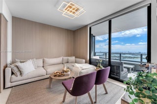 Exquisite fully furnished corner residence at Gale Miami (Natiivo) featuring 3 bedrooms, 3 bathrooms, and 1,230 sq. ft. of modern luxury. Designed by acclaimed firm Urban Robot, this home is meticulously curated with high-end designer furniture and custom décor, creating a sophisticated yet warm ambiance. Floor-to-ceiling windows flood the space with natural light and open to an expansive balcony with breathtaking views of Biscayne Bay, Port of Miami, and Miami Beach. Residents enjoy over 70,000 sq. ft. of resort-style amenities, including a pool deck with bay views, state-of-the-art fitness center, spa with sauna and steam room, co-working spaces, and multiple dining options. Located within Miami Worldcenter, steps from top restaurants, shopping, and entertainment.