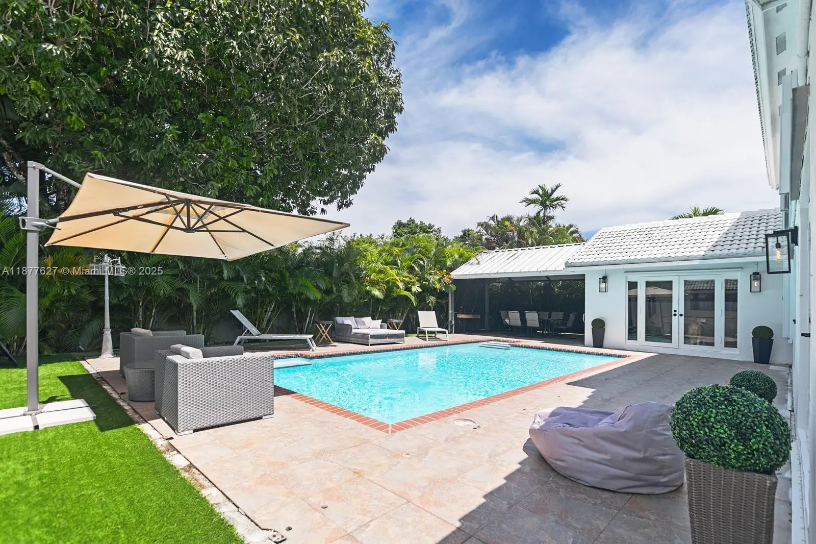 Welcome to your private oasis in the heart of Cutler Bay! This beautifully remodeled 4-bedroom, 3-bathroom home offers 2,445 sq ft of spacious living in Lakes By The Bay Sec 7. Vaulted ceilings and a split-floor plan enhance both style and function. The modern chef’s kitchen boasts high-end finishes, while impact French doors and accordion shutters provide peace of mind. Step outside to the private 15×30’ pool and fenced backyard—perfect for entertaining or relaxing in total privacy. Just minutes to Black Point Marina, walking & biking trails, parks, shopping, top-rated schools and quick access to the Florida Turnpike. A rare find that blends comfort, luxury, and location!