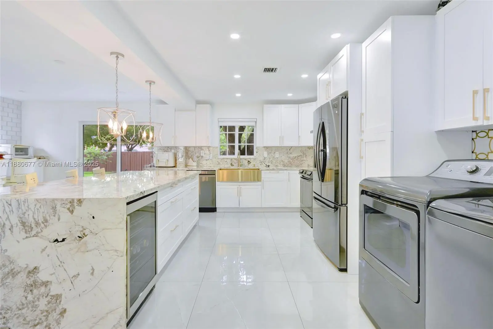 Deerwood Beautifully renovated move in ready 2-story 3 bed/3 bath Single family home near Zoo Miami. Spacious open floor plan with family room, dining area. Gorgeous new gourmet kitchen with gold & white granite countertops/backsplash, brass finishes, pot filler, large island with tons of storage, wine cooler. Built-in bar area with retractable TV. Home features impact windows/doors, new porcelain flooring on 1st floor, 2 remodeled baths, roomy bedrooms, 2022 AC. Outdoors enjoy a patio, shed, and large fenced yard with fruit trees. A 60-ft gate offers access for boat/trailer with electric & water hookups for outdoor kitchen. Conveniently located near Super Walmart, dining, Starbucks, new LA Fitness, close to great schools and 5 minutes to highways! Easy to show!!