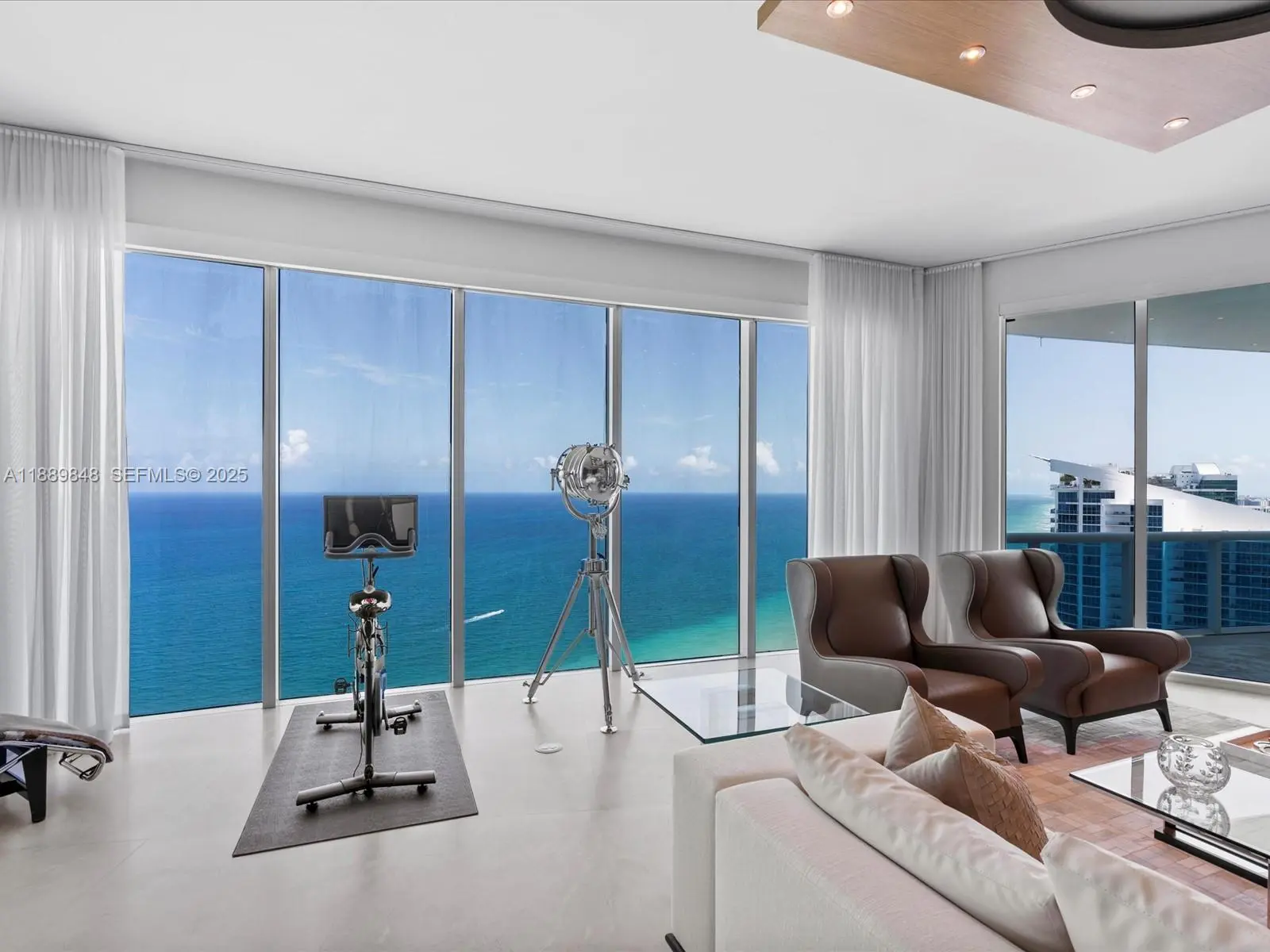 Soaring 12-foot ceilings and 5,086 SF of interior space set the tone in this ultra-exclusive Sky Residence—commanding the entire 40th floor of the iconic Trump Hollywood. A private elevator opens into a Robert M. Swedroe-designed sanctuary where walls of glass capture endless ocean, Intracoastal, and sunset views, amplified by nearly 1,000 SF of terraces. Inside: Crema Marfil marble floors, bespoke millwork, and a $500K+ Crestron system delivering true five-star control and comfort. For the collector-connoisseur: 10 parking spaces (with 9 contiguous), 10 storage units, 3 wine lockers, and a private cigar lounge humidor—a rare level of ownership utility. White-glove living rounds it out with 24/7 concierge, valet, attended beach service, spa, pool, fitness center, and a private restaurant—an estate in the sky built for those who don’t compromise.