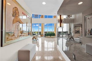Welcome to Penthouse 7 at Villas of Positano, a stunning two-story oceanfront residence in the heart of Hollywood Beach. This fully furnished designer home offers 3,683 sq. ft., 3 bedrooms + den | 3.5 bathrooms, soaring 21-ft ceilings, a private elevator, and a 797 sq. ft. terrace showcasing breathtaking ocean, bay, city, and park views. Features include marble floors, a remodeled Italian gourmet kitchen, a grand living room, a primary suite on the main level, and an entertainment mezzanine. Enjoy resort-style amenities: oceanfront pool, spa, fitness center, concierge, valet, and direct beach & marina access—the perfect blend of privacy, sophistication, and coastal luxury.