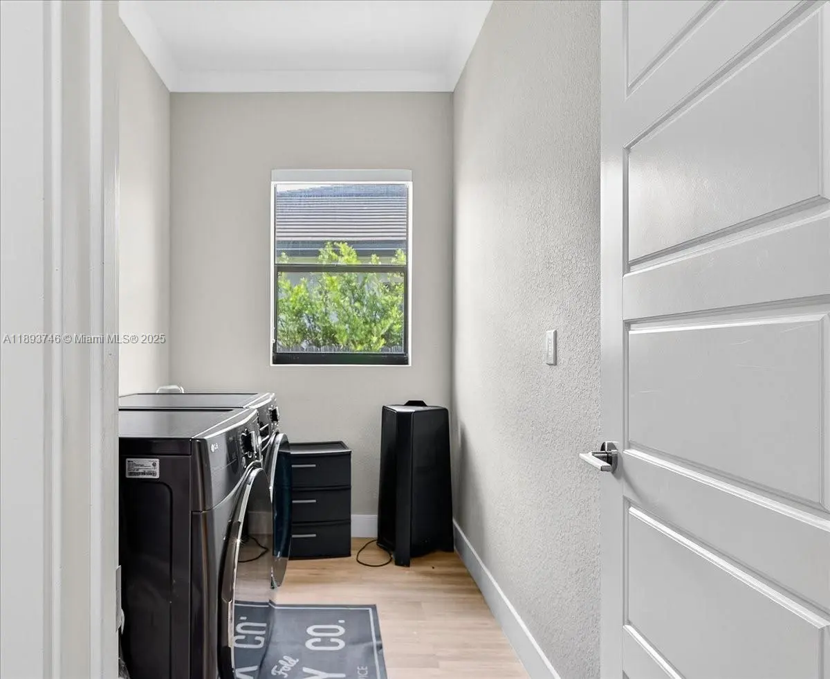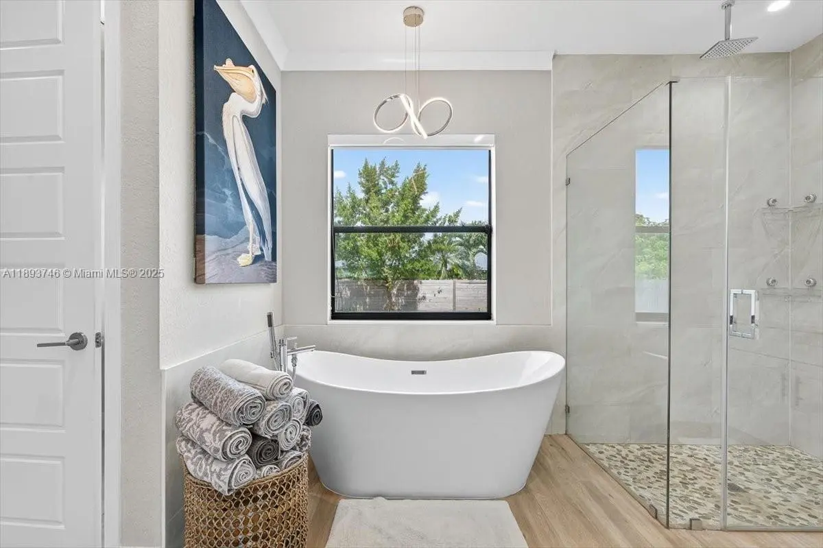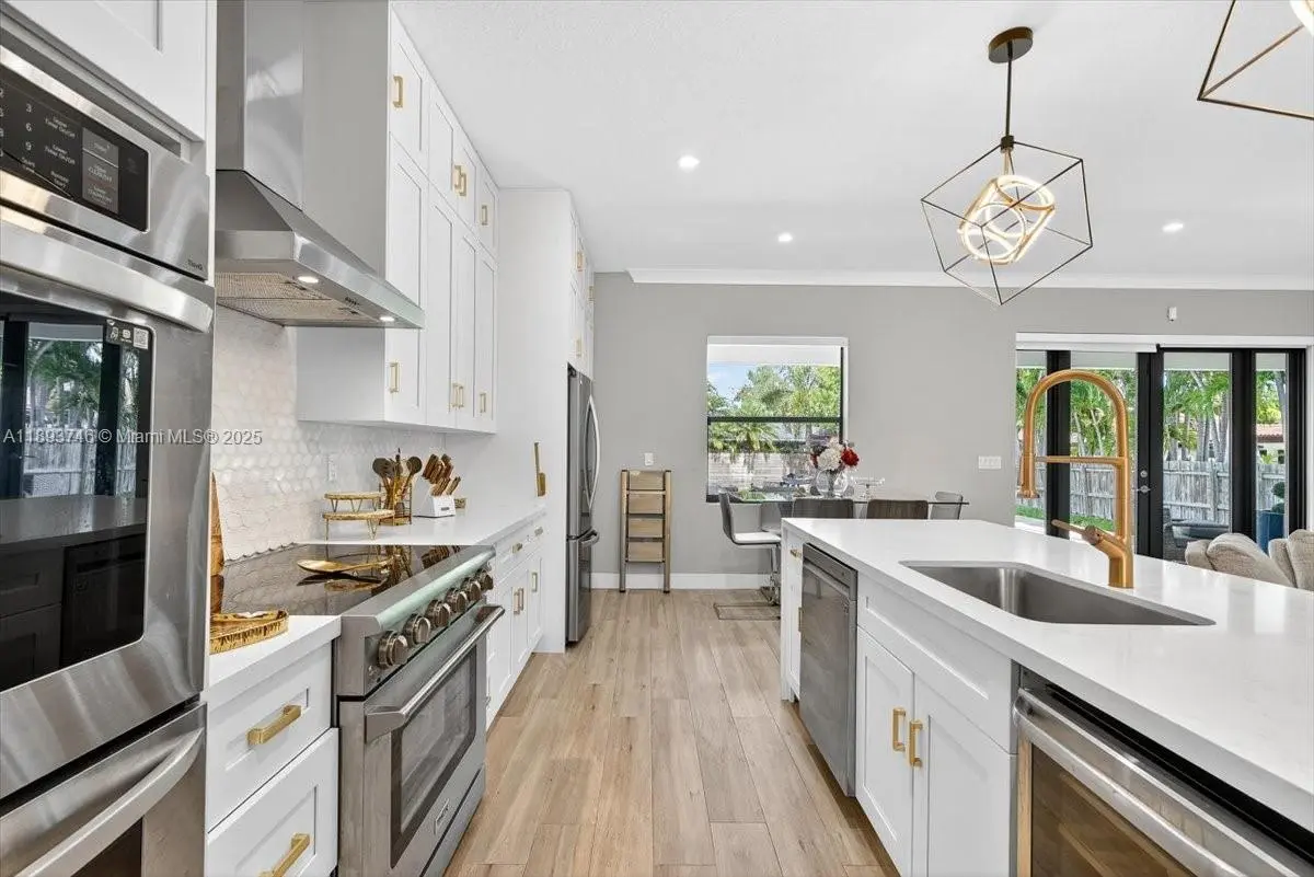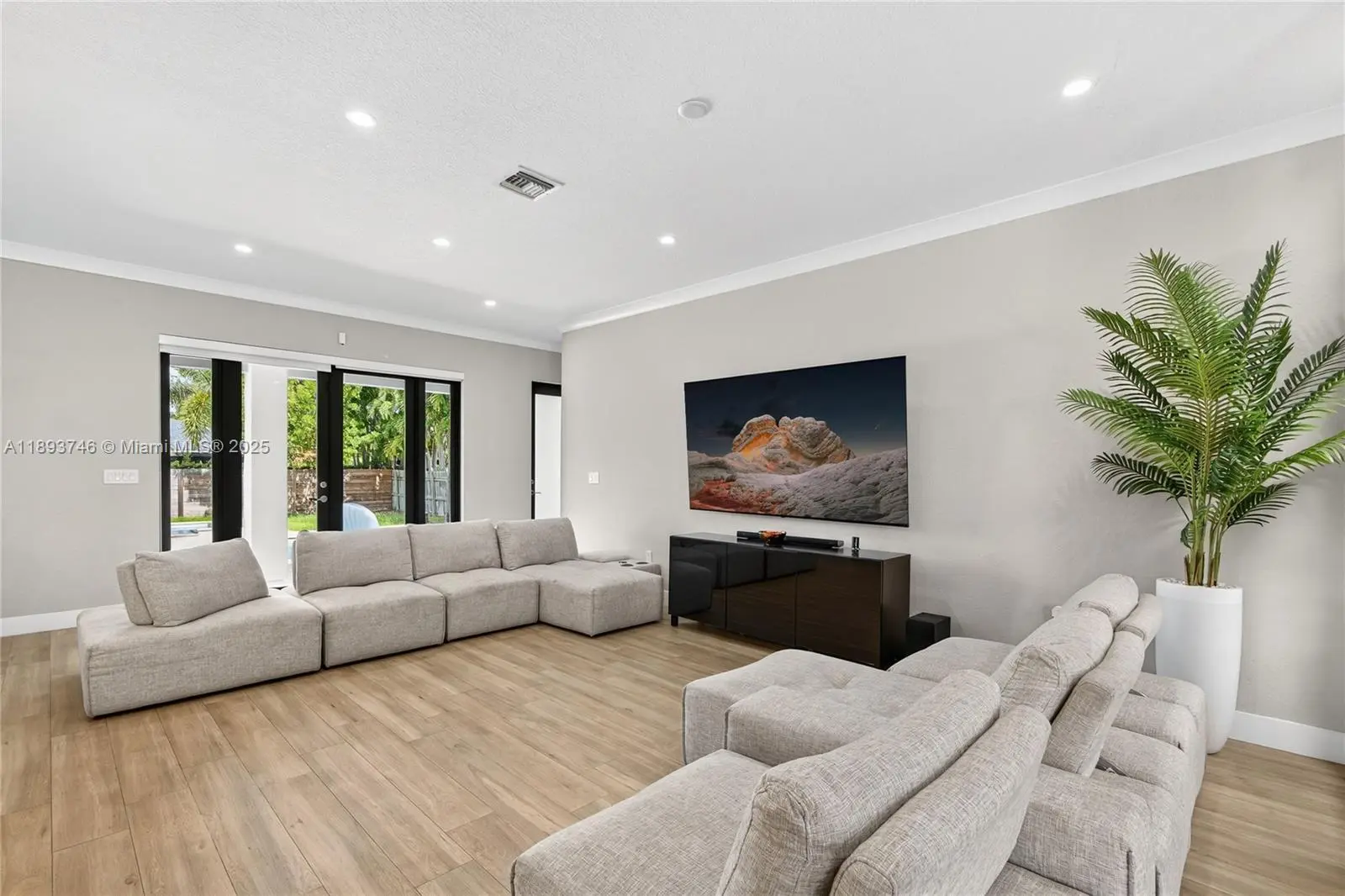 Sophisticated 2022 Contemporary Residence showcasing exquisite design and superior craftsmanship throughout. This modern home features custom finishes, impact-rated windows and doors, and an open-concept living area ideal for effortless entertaining. Step outside to your private oasis featuring a heated saltwater pool with integrated whirlpool spa and beautifully finished outdoor living space. Every detail has been thoughtfully curated to deliver a seamless blend of luxury, comfort, and modern elegance.