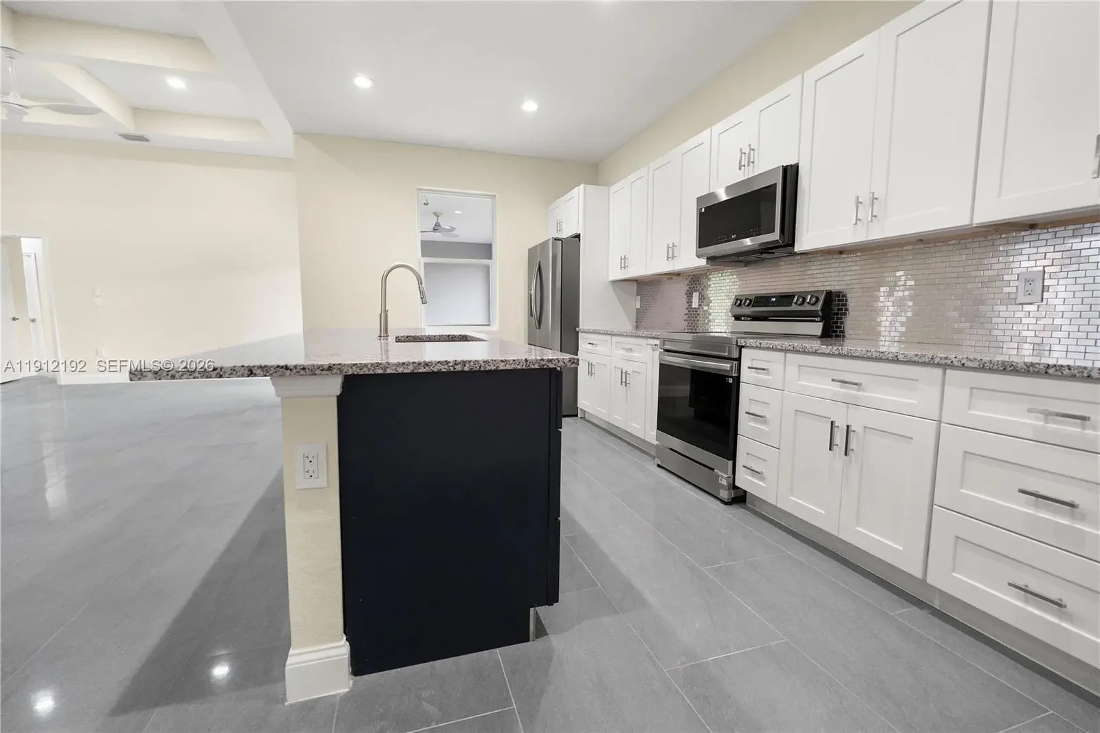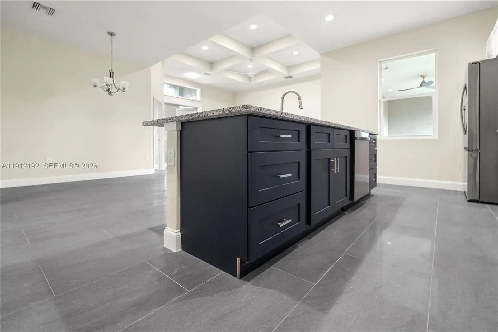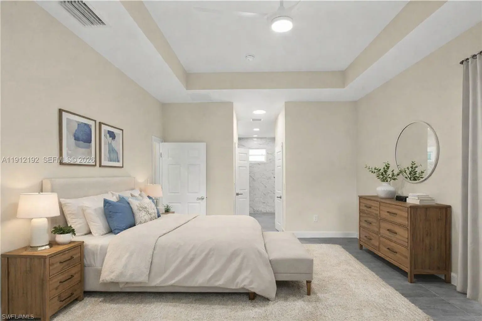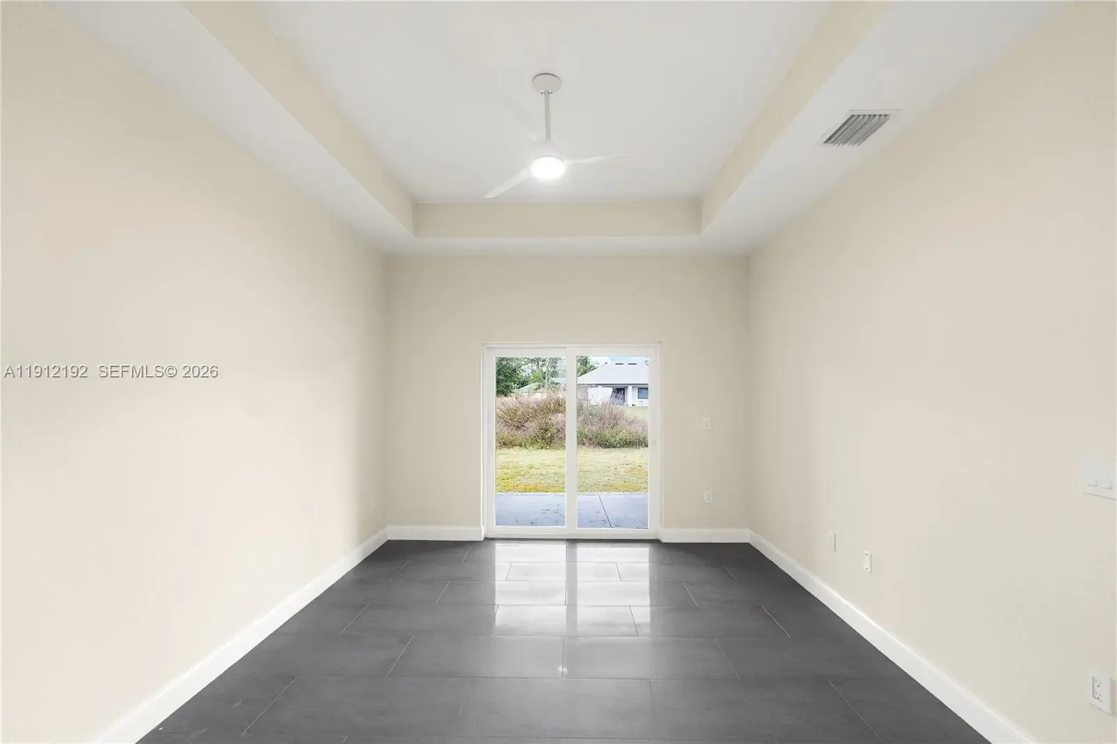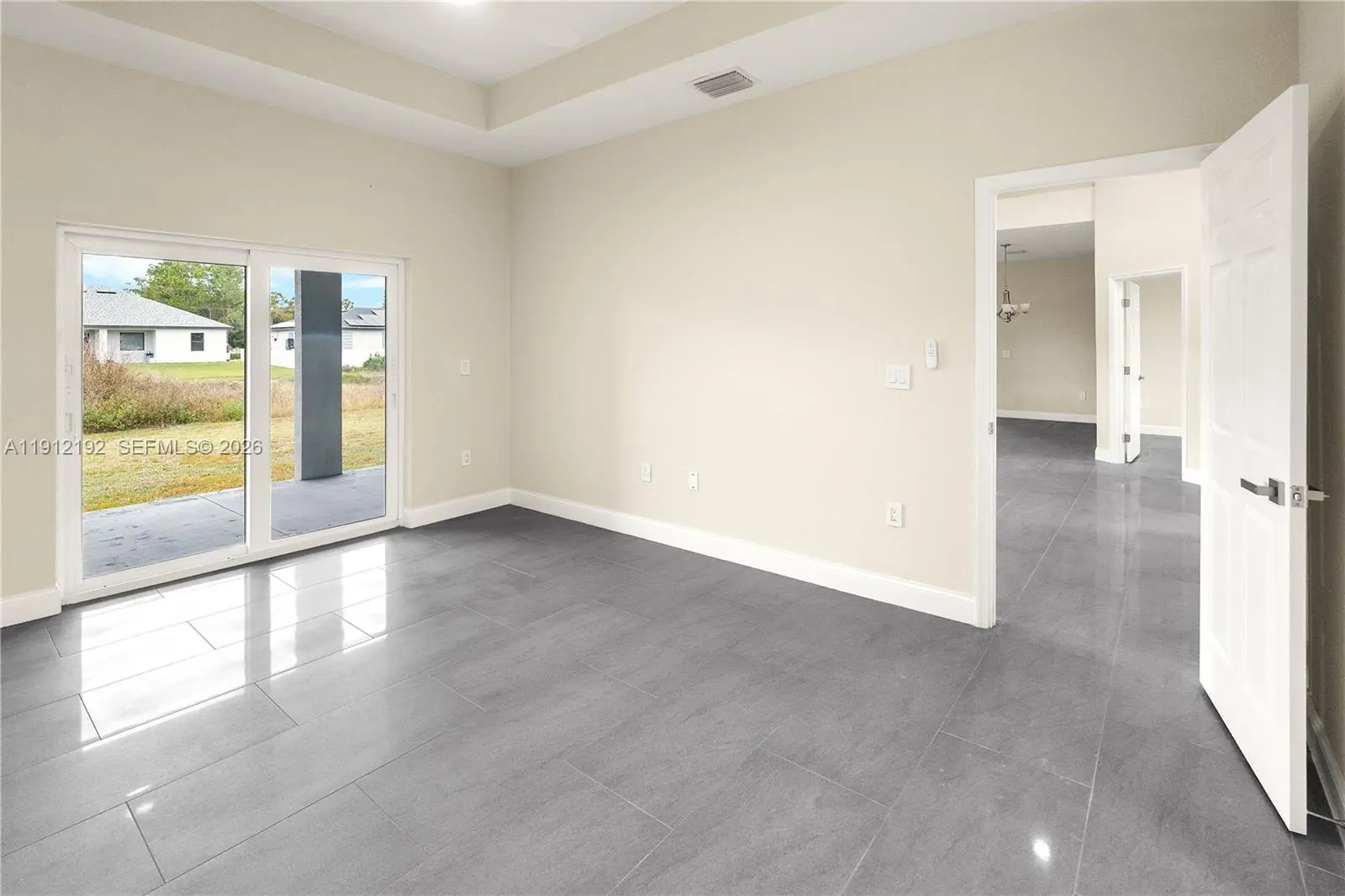 Brand New 2024 Construction in Lehigh Acres! This 3?BR + DEN, 2?BA home features an open floor plan with gray tile, tray ceilings, and a bright great room. The modern kitchen boasts soft-close cabinets, granite countertops, stainless steel appliances, a decorative backsplash, and an oversized island. Enjoy two master suites with walk-in closets, dual sinks, and walk-in showers. Large windows and recessed lighting fill the home with natural light, while the open lanai overlooks a peaceful freshwater canal. Built with solid concrete block construction, the home includes a 2-car garage, well & septic, and a spacious lot perfect for a pool or garden. Move-in ready and conveniently located near schools, shopping, and main roads.
