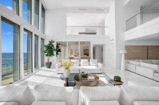 Experience unparalleled luxury in this breathtaking 2-story penthouse featuring sweeping 270° views of Biscayne Bay and the Miami skyline. Located on the 49th and 50th floors of the coveted Santa Maria in Brickell, this 10,000 SF sky mansion comes artfully furnished with curated pieces from All About the Wow. The private primary suite wing includes its own terrace, dual spa-style bathrooms, and expansive walk-in closets. Additional highlights include dual-level floor-to-ceiling glass windows, multiple generous entertaining spaces including a bright sunroom, a gourmet chef’s kitchen with a butler’s pantry and premium appliances, and a private rooftop plunge pool with stunning panoramic views. Residents enjoy exceptional amenities, including a newly completed fitness center, spa, pool, tennis court, on-site restaurant, and 24-hour concierge. Boat slips are available for purchase.