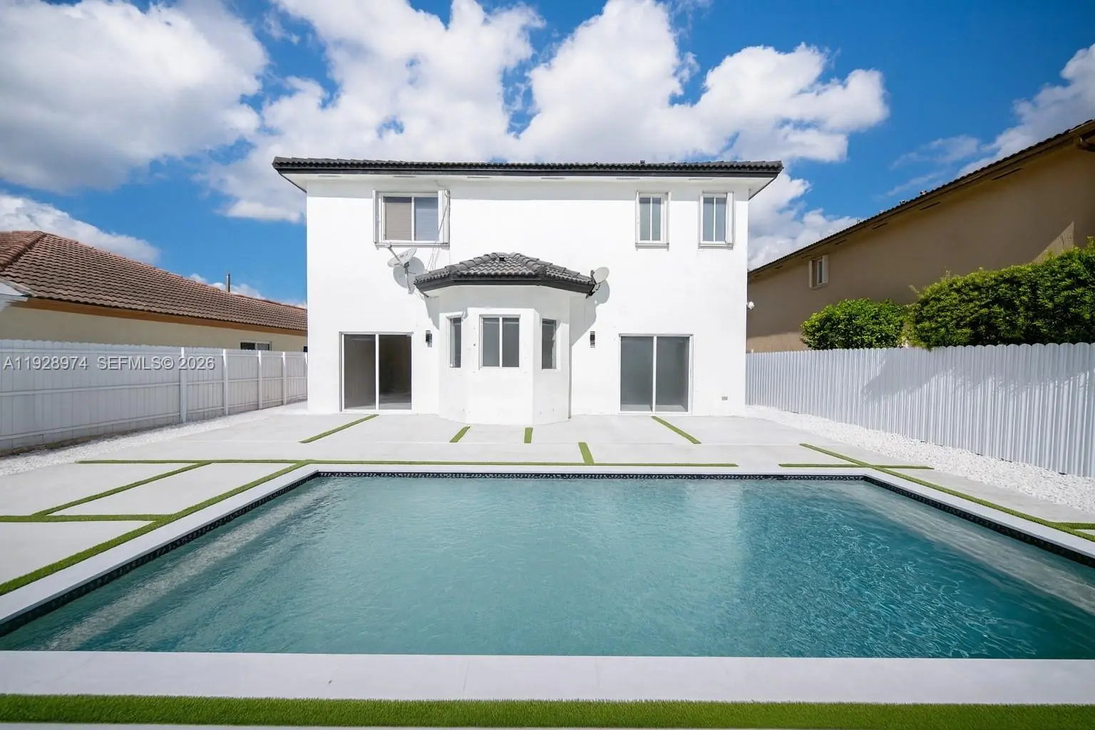 Discover this fully remodeled 5-bedroom modern home featuring a brand-new resort-style pool, large modern patio, and NO HOA. Every detail has been upgraded: new porcelain floors, a stunning quartz kitchen with European-style cabinetry, stainless steel appliances, modern bathrooms, updated lighting, interior paint, and more. Some photos have been virtually staged to show the home’s full design potential. The bright open-concept layout offers incredible natural light and seamless indoor–outdoor flow. The backyard is a private oasis with contemporary hardscape, turf accents, white-stone landscaping, and a brand-new pool, perfect for entertaining and enjoying the Miami lifestyle. Move-in ready and beautifully redesigned, this home is located in a desirable Miami community close to top schools, parks, major highways, and shopping. A rare turnkey property offering modern luxury, space, and total freedom with NO HOA. Motivated Seller — send your offers! This beauty won’t last!