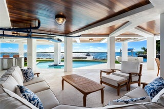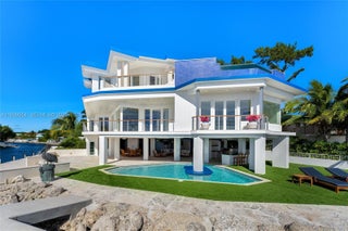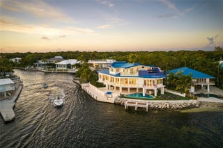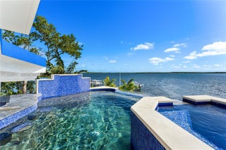 This 2-story estate sits on a 7,300 SF point lot at the tip of Adam’s Cut w/167 FT WF & views to Largo Sound w/ocean access. Spanning 3,723 SF the 4BR/5+2BA home features La Finestra impact windows, elevator & Shell Reef limestone floors. 1st floor offers living room w/floor-to-ceiling windows, drop-down TV, terrace access, open dining area, & chef’s kitchen w/backlit polished Plume Quartz island & top-tier Jenn Air appliances. 3 BRs include a junior suite w/private balcony plus 2 ensuite guest rooms. 2nd-floor principal suite has an additional room, lux spa-style bath, & private terrace w/rooftop infinity pool-jacuzzi, & bar. Ground-level highlights: Large covered terrace, summer kitchen, pool, bar, cabana bath, & wine cellar. 77 FT dock w/permitting in progress for a 30,000 lb boat lift.