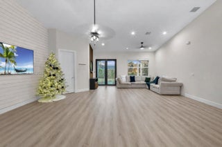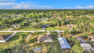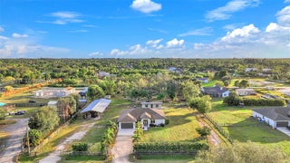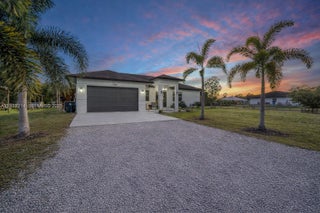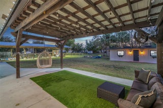 Built in 2020, this exceptional 4-bedroom, 2-bath home sits on a sprawling 1.14-acre lot with NO HOA & offers a desirable split floor plan with high-end upgrades throughout. Enjoy all-new luxury vinyl plank flooring, dimmable lighting, custom closets, full smart-home features, & full impact windows & doors for peace of mind. The show-stopping kitchen features luxury Café appliances, natural Taj Mahal stone countertops, & a Cristallo stone island with LED lighting—ideal for everyday living & entertaining. The exterior impresses with 3 front entry gates (2 automatic), full exterior gutters, and premium Govee lighting surrounding the home, creating a stunning nighttime ambiance. Outdoor living includes an extended patio, pergola, outdoor fans, RV hookup, & a large pole barn with newly installed electric—perfect for storage, equipment, or hobbies. A former barn has been thoughtfully converted into a finished workshop/office space featuring a newer mini-split A/C, tongue-and-groove ceiling, LED lighting, built-in cabinetry, & durable Hardie concrete siding. With water & electric already in place & ample room to expand, this structure offers excellent potential for future guest quarters, in-law use, or a private workspace. Additional highlights include solar panels that significantly reduce electric costs, a septic system, underground well system, & 7 exterior Hikvision security cameras. Impeccably designed with upgrades at every turn—schedule a private showing to see it firsthand!