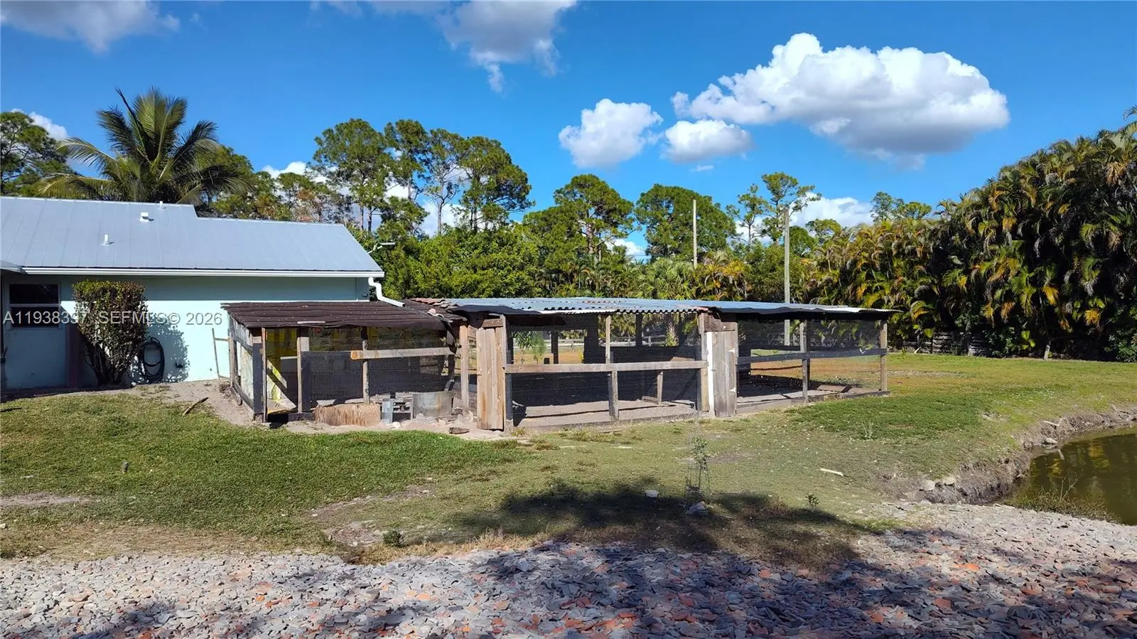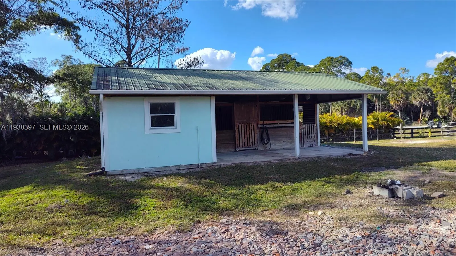 PRICE REDUCED!! CBS construction dream home This charming home offers 3 bedrooms, 2 bathrooms, and a 1-car garage, ideal for families, investors or anyone seeking space, privacy, and a peaceful country lifestyle with modern comfort. The home features a 2-year-old ALUMINUM ROOF, providing durability and long-term peace of mind, Central A/C was installed in 2019, Step outside through the French doors onto the screened back porch, where you can enjoy your morning coffee or host a barbecue with friends and family. The huge 1.28-acre yard is completely fenced with many mature fruit trees (papaya, passion fruit, guava, and more). Perfect for pets or children to play safely. A second driveway leads to the horse barn (approximately an additional 864 square feet with concrete aisle and cross ties, two stalls in barn and one separate additional 3rd stall/paddock. Inside the barn is an enclosed large feed/tack room with a flex space that could be secondary living quarters. Also, a chicken coup as well Large yard with pond plenty of room to have a large arena!!! 220 RV hook up, trailer or boat parking space. The home has no structural damage; only minor cosmetic touch-ups may be desired to personalize it to your taste. Conveniently located just minutes from Seminole Pratt Rd close to Publix, restaurants, shopping, schools, etc. this home offers the perfect blend of privacy and accessibility. Enjoy the peaceful Loxahatchee !! YOU MUST SEE AND MAKE AN OFFER!!