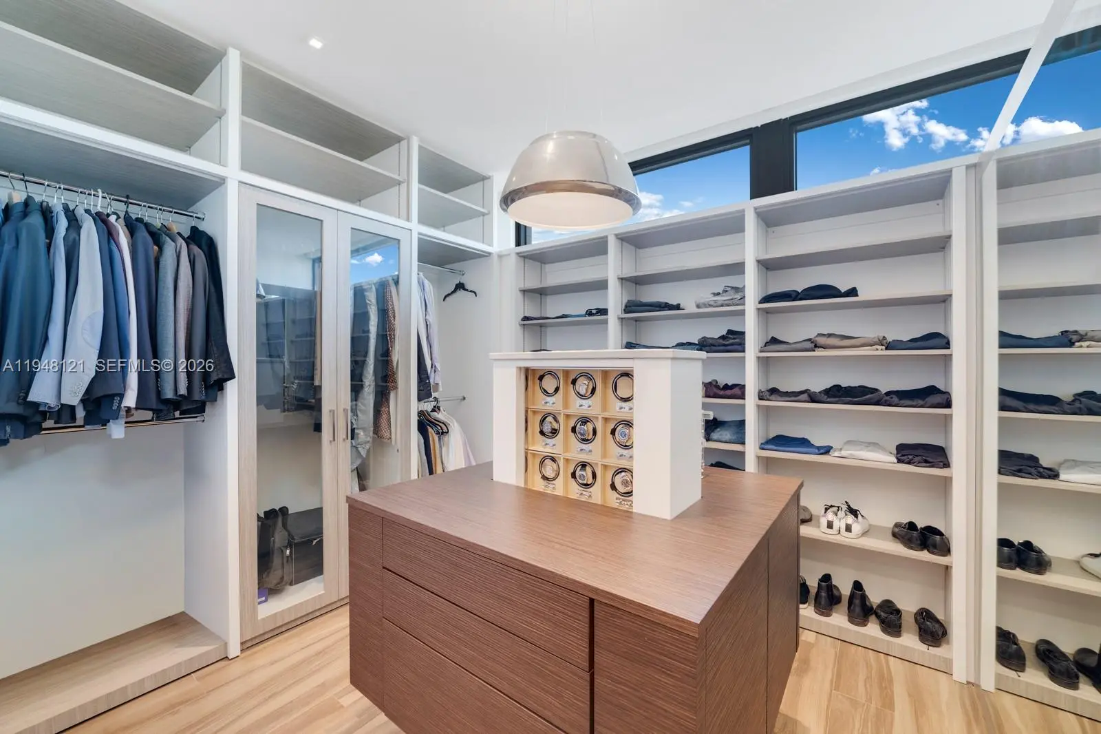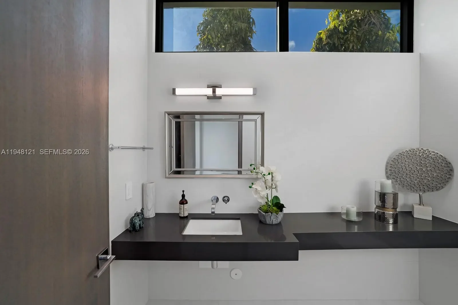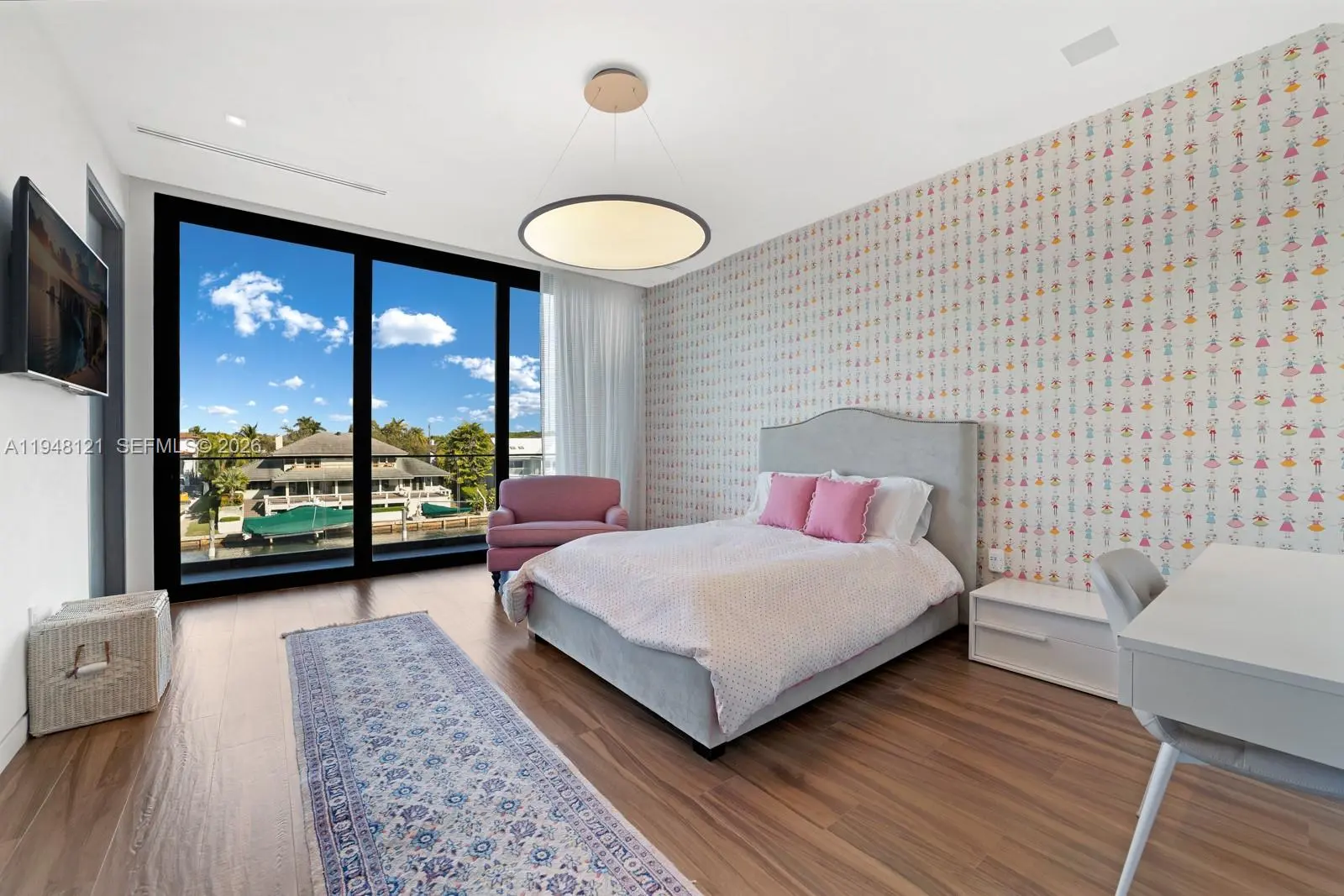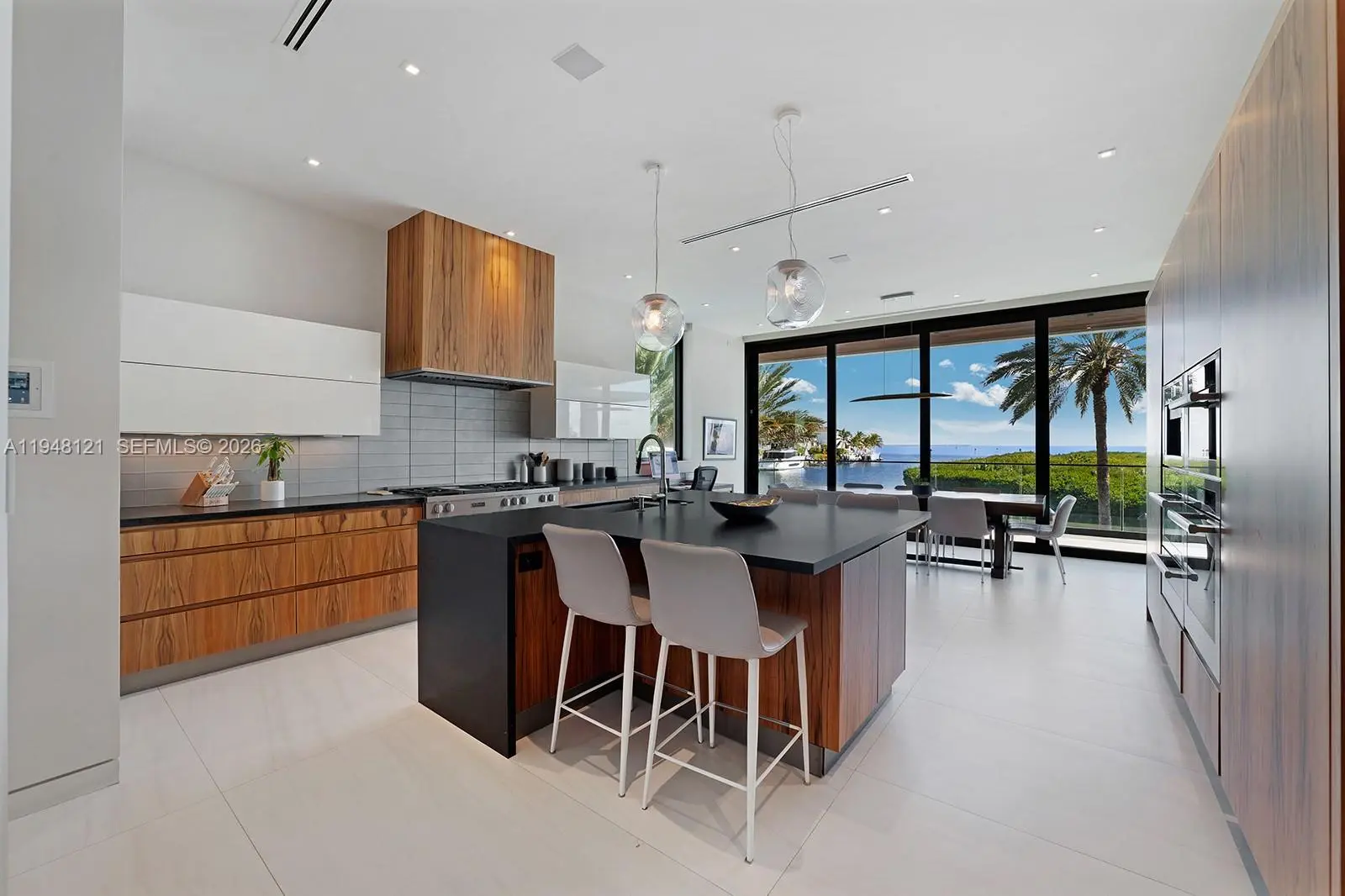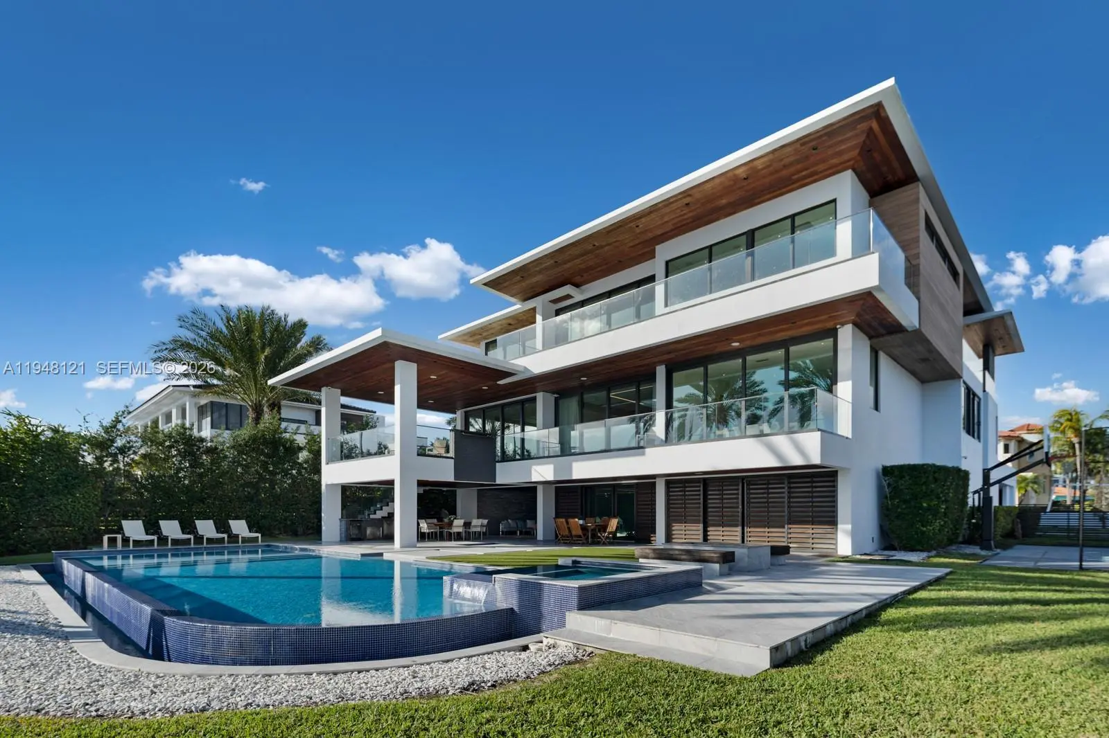 Spectacular bayfront modern family home on a rare corner-point lot with 300 feet of prime waterfront in an unbeatable location. This chic family home is perfect for entertaining, featuring a resort-style pool and spa, a built-in BBQ, fire pit lounge, outdoor kitchen, expansive waterfront terraces, and a basketball or volleyball court by the water, creating a one-of-a-kind backdrop for both relaxation and play. The property features two private docks, one accommodating over 100' boat, another with a 30,000 lb boat lift, and effortless access to Biscayne Bay and the open ocean. Inside, the home offers a gourmet kitchen with a huge island and a large waterfront-facing area for casual meals. The butler's pantry, formal dining room, and temperature-controlled custom wine wall are perfect for entertaining. There are seven bedrooms and 8.5 baths, filled with natural light and clean contemporary design. Five bedrooms are upstairs, each with a private bath, walk-in closet, and covered terrace overlooking the water. The primary bedroom and bath have fantastic views of the bay, and the bathroom features a spa sanctuary vibe, with a free-standing tub and a sauna. An elevator connects all levels for everyday ease. This is a true boater’s dream in a sought-after neighborhood close to Gulliver Prep, built in 2018 by renowned Calil Architects. Private, dramatic, and impossible to replicate—this is luxury waterfront living at its best. Gated community, and home in an unbeatable location.