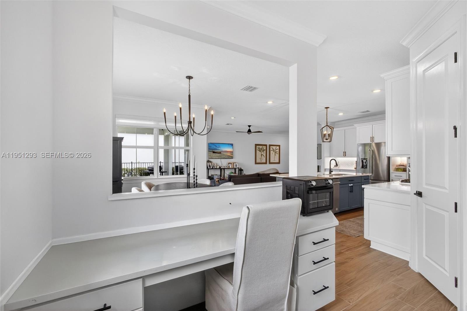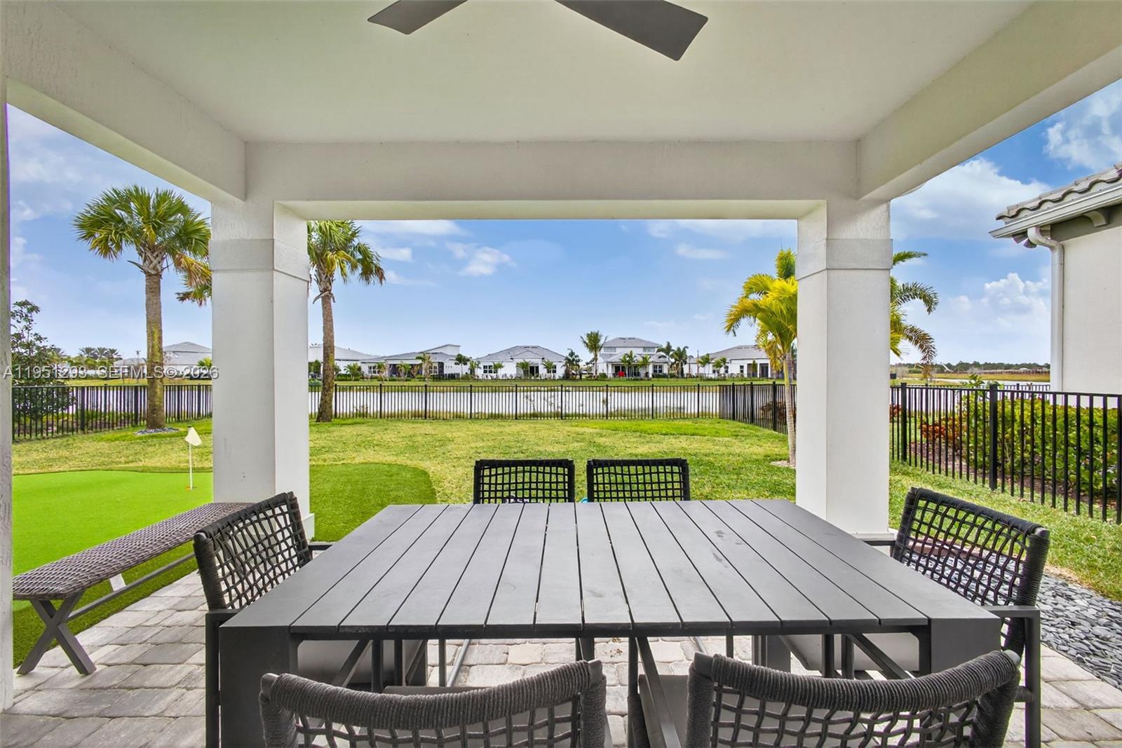 Welcome to this 2024 new construction Riverwalk model, one of the most desirable floor plans in the gated, family-friendly community of Avondale in Avenir. This move-in-ready home features over $130,000 in builder upgrades plus additional custom improvements. The open-concept design is ideal for family living and entertaining, featuring a built-in kitchen with quartz countertops, large island, upgraded cabinetry, custom backsplash, under-cabinet lighting, and built-in stainless appliances. Pocket sliding glass doors open to an extended covered lanai, creating seamless indoor-outdoor living. The spacious owner's suite includes an expanded spa-style shower with dual shower heads, floor-to-ceiling tile, and frameless glass. Bathrooms throughout feature quartz counters and upgraded finishes. Additional highlights include all custom built in closet systems, mudroom cabinetry, crown molding, motorized light-filtering shades, whole home water filtration system, and a Tesla/EV charging hook up. The fully fenced in backyard is great for children and pets and included a custom putting green for family fun! Avenir offers resort-style amenities including a clubhouse, pool, playgrounds, BBQ areas, pickleball and tennis courts- designed for an active, connected lifestyle.