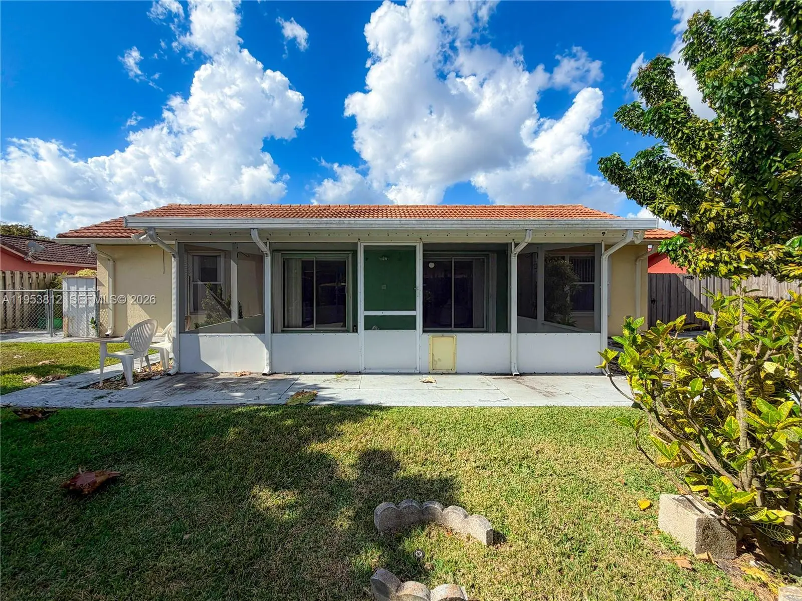 3 bedroom, 2 bathroom single-family home located in the desirable Richmond West area. Features tile flooring throughout, spacious living and dining areas, and an open kitchen with ample cabinetry. Split bedroom layout with generously sized rooms and a private primary suite. Enjoy a large covered and screened patio, ideal for outdoor living and entertaining. Fully fenced backyard with an irrigation system, and room for a pool. One-car garage plus driveway parking. Quiet residential street. No HOA. Conveniently located near schools, parks, shopping, dining, and major highways.