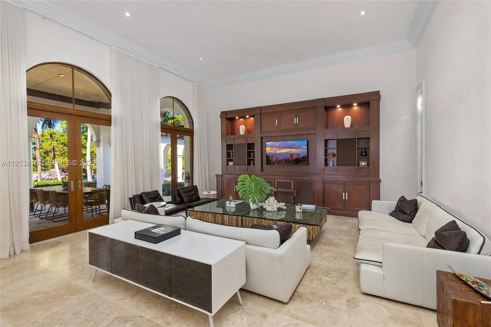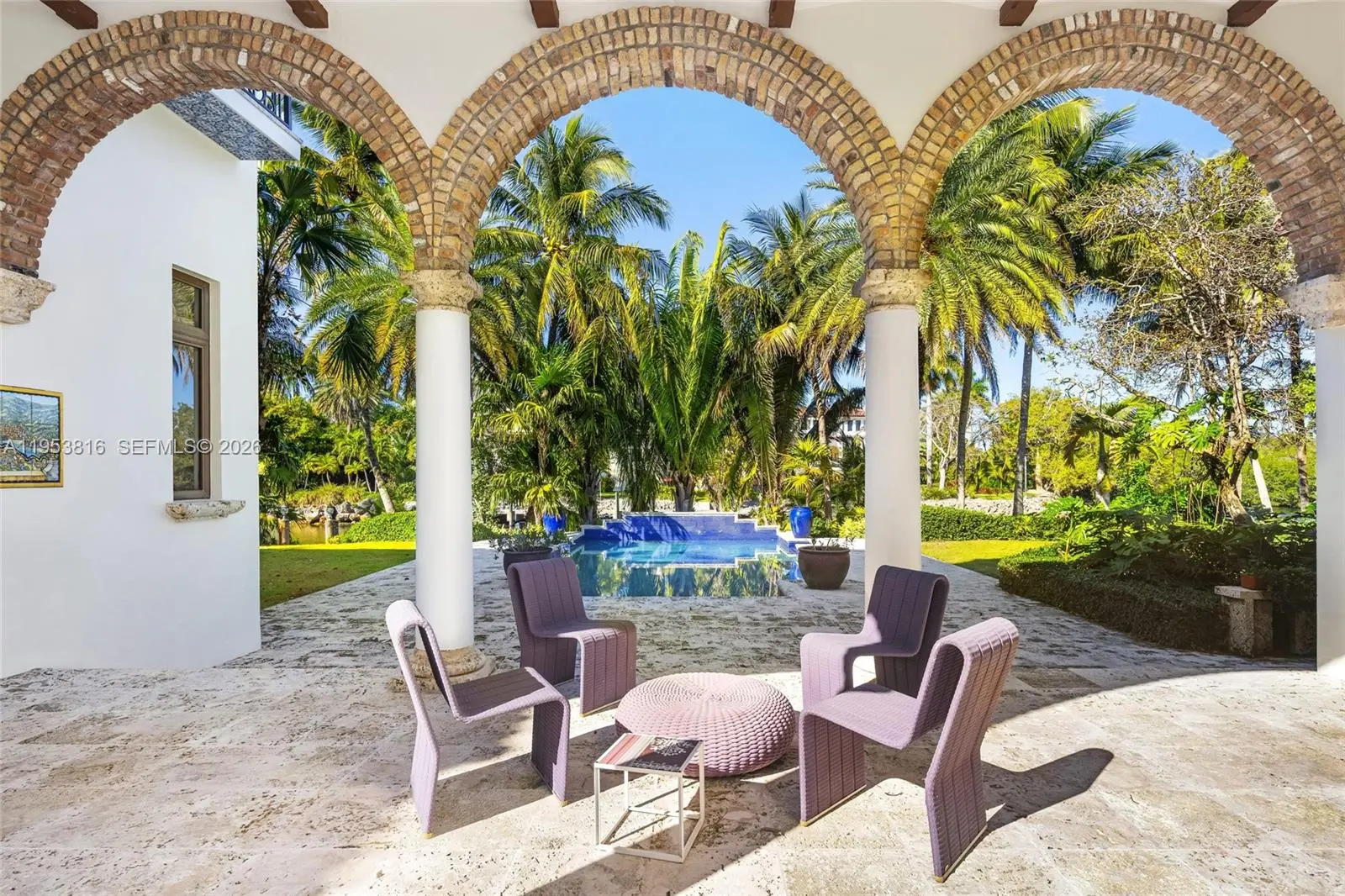 Spectacular in scale and unrivaled in waterfront presence, Villa De Casuarina is a Mediterranean-inspired estate set within the prestigious, guard-gated enclave of Gables Estates. Encompassing over 11,500 square feet on an expansive 38,161-square-foot lot, this private Riviera-style retreat offers 8 bedrooms, 8 bathrooms, and 2 half bathrooms, commanding an extraordinary 388 feet of water frontage, a rarity within one of South Florida’s most exclusive communities. A grand foyer with soaring ceilings and Italian tile flooring establishes a tone of timeless elegance, unfolding into formal and informal living spaces designed for elevated entertaining. Interior highlights include a wine cellar, cigar room, private theater, and disco lounge, offering a residence equally suited for intimate moments and large-scale gatherings. The recently renovated chef’s kitchen anchors the home with marble countertops, dual Sub-Zero refrigeration, Miele coffee stations, and premium appliances, blending refined design with everyday functionality. Outdoors, manicured gardens frame a resort-style setting with a heated pool, expansive terraces, and private dockage accommodating up to a 80-foot yacht. Ideal north exposure fills the home with soft natural light, complemented by impact windows throughout. Villa De Casuarina stands as a rare waterfront compound where scale, privacy, and enduring elegance converge in one of Coral Gables’ most tightly held enclaves.