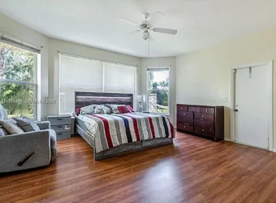 This 5-bedroom beauty features a primary suite and a guest bedroom with a full bath on the first floor, perfect for an office or in-law suite. Upstairs, find 3 more bedrooms and a full bath. Entertaining is easy with an open kitchen, , and granite countertops, overlooking the family room and outdoor area. extended paver patio, and cabana bath. Includes a whole-home water softener system and sprinkler pump. Community perks: clubhouse, pickleball, tennis, basketball courts, pool, and manned gate.