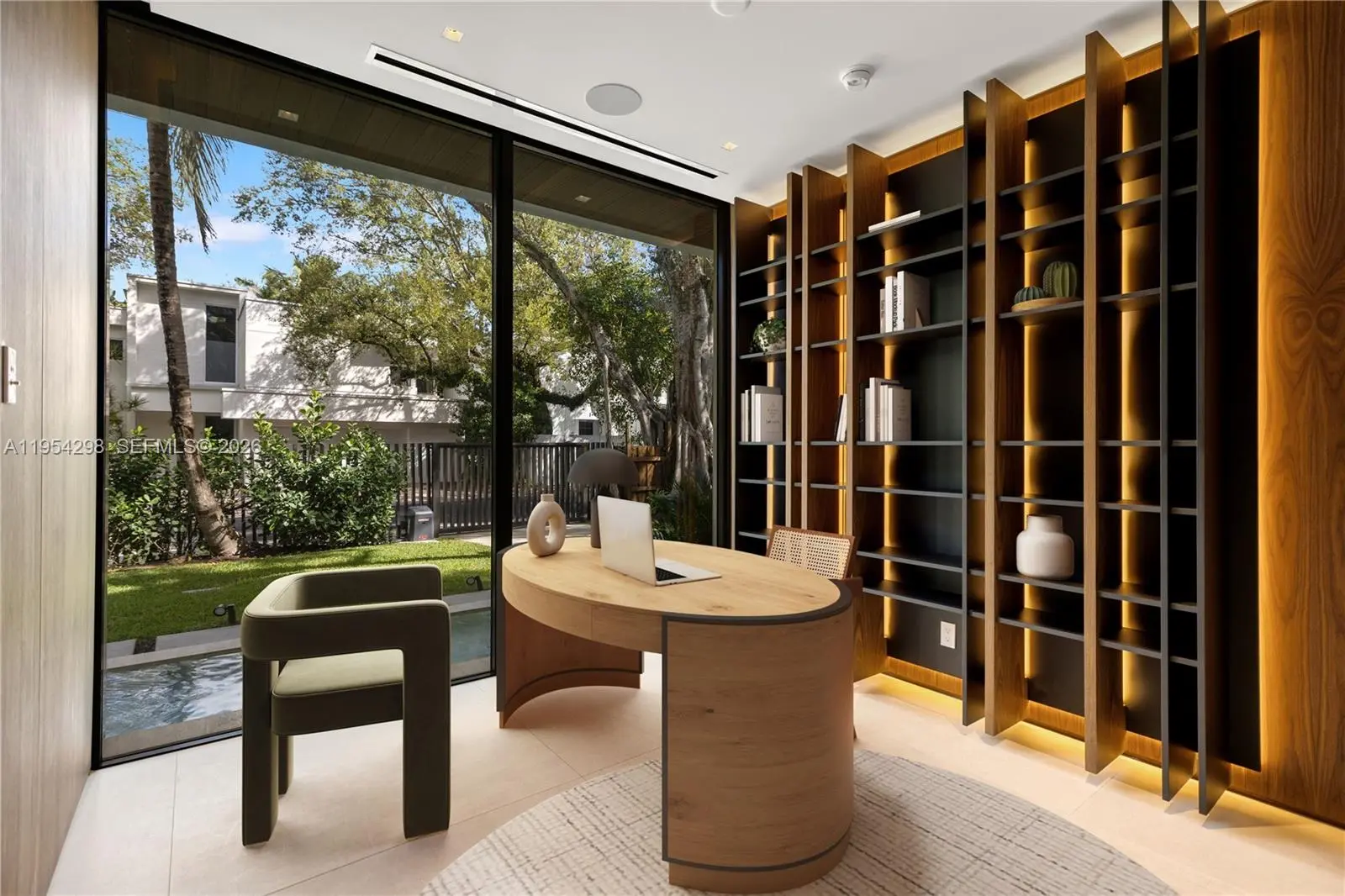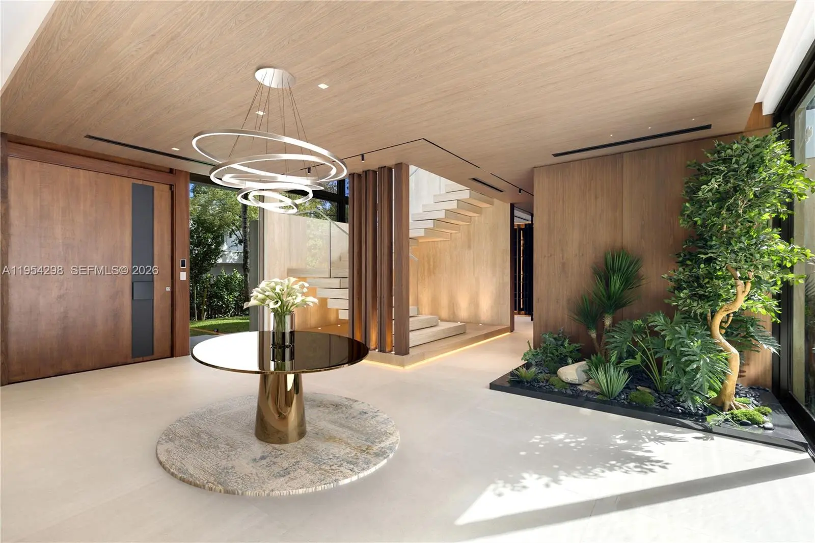 Live the ultimate North Grove lifestyle in this newly completed architectural estate on a 16,741-sq-ft corner lot with over 10,000 sq ft of refined modern design. Enter through dual gated streets into a residence curated for grand entertaining and everyday luxury. The home offers 6 bedrooms and 7.5 baths including staff quarters, all with en-suite baths, walk-in closets and private terraces. Highlights include a dramatic great room with water vapor fireplace, chef’s kitchen with Gaggenau appliances, prep kitchen featuring Thermador appliances, theater, gym and office. Outdoor spaces feature a kitchen, cabana bath, shower, steam shower, pool, spa, and terraces. Crestron smart home technology and a 16-camera security system ensure privacy and peace of mind.