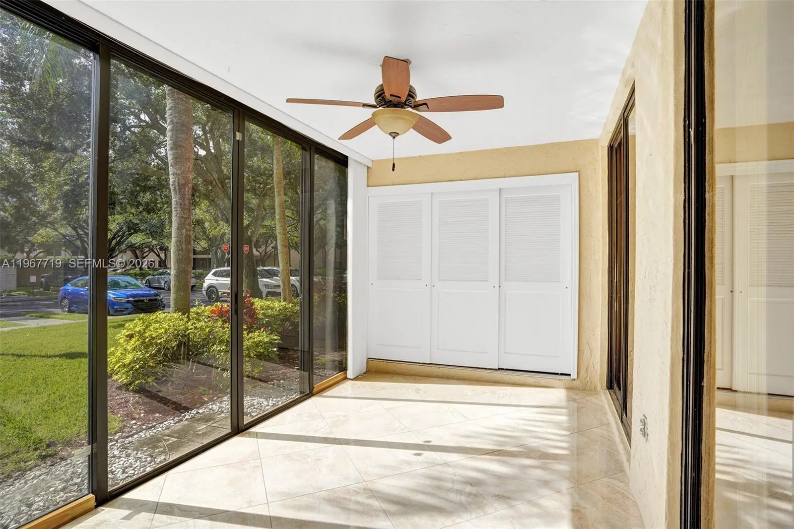 Beautifully updated corner unit! Located on 1st floor in charming community of Optima Village in Fountain Spring. Nestled in back of complex. Being Sold AS-IS. No stairs! All ages! Small storage closet at front door. Pets welcome under 20 lbs. Unit is a total of 1,422 sq. ft. which includes glass enclosed patio w/ceramic tile to create extra living space. Open kitchen features: wood cabinetry, granite countertops, recessed lighting, SS appliances. Split BR floor plan. NO carpet! Ceramic tile and wood laminate. Newer front load Samsung washer/dryer. 1-assigned parking + guest. Roof redone 2018. Resort style pool w/ lap lanes, kids pool, hot tub, clubhouse. Can rent immediately: TENANT IN PLACE UNTIL DECEMBER 10, 2026. NO AIRBNB OR SHORT TERM RENTALS PERMITTED. Walking distance to Deicke Park (adjacent to Fountain Spring). Park offers tennis, volley-ball, 1/2 mile walking trail + more! Room sizes listed. 700 credit score required per HOA. Optima Village is centrally located and a well-maintained community known for its serene environment & family-oriented atmosphere. It offers proximity to Sawgrass Mills Mall, dining, casinos and major highways, making it convenient for commuters. Fort Lauderdale Beach is only about a 20 minute drive east! Association fee is $1,560.37 quarterly plus $270 quarterly to Master Assoc. (total of $1,830.37 per quarter). Assessment for the 25 year building recertification and restoration has been paid in full. CLICK ON VIRTUAL TOUR TO SEE VIDEO!
