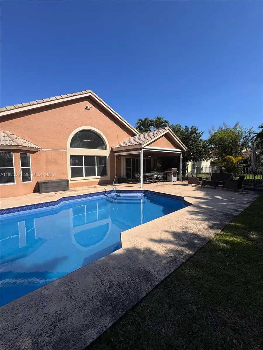 Beautiful 3-bedroom, 2-bathroom home in one of Wellington’s most desirable areas. It features a bright and inviting open living room and formal dining area, perfect for both everyday living and entertaining. The spacious kitchen with breakfast area flows seamlessly into the family room, with sliding doors leading to the patio and backyard. Enjoy an exceptional outdoor space with a large swimming pool, tranquil canal views, and mature trees, creating a perfect setting to relax and enjoy the Florida lifestyle. Located within A-rated school zones, including Binks Forest Elementary and Wellington Landings Middle School.