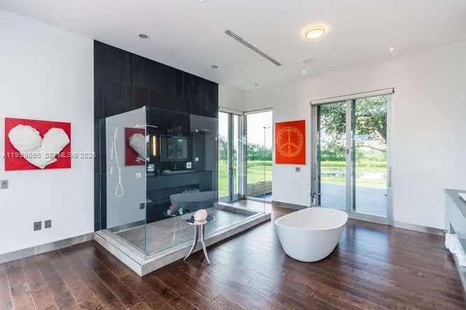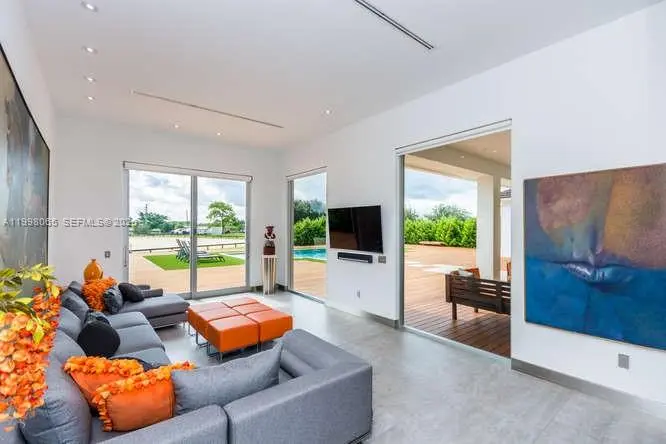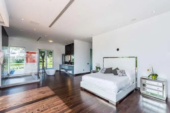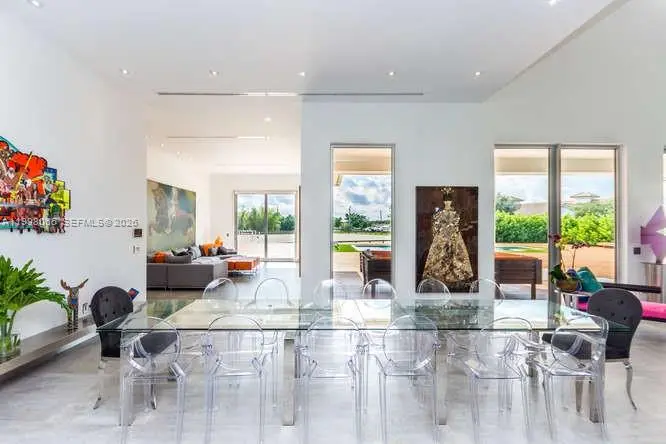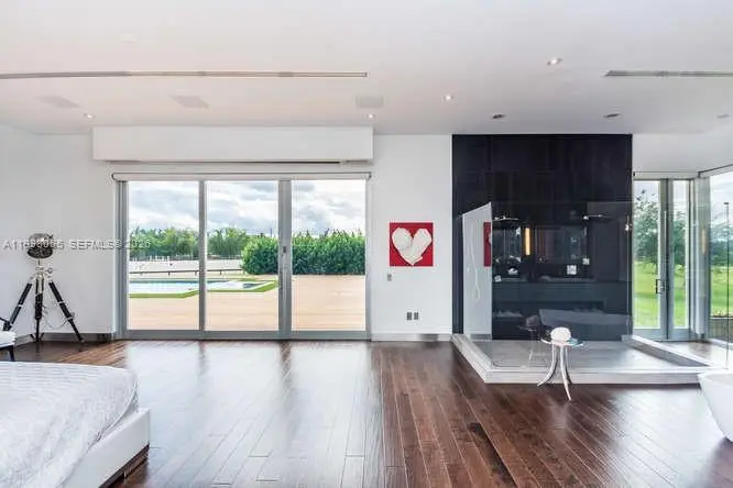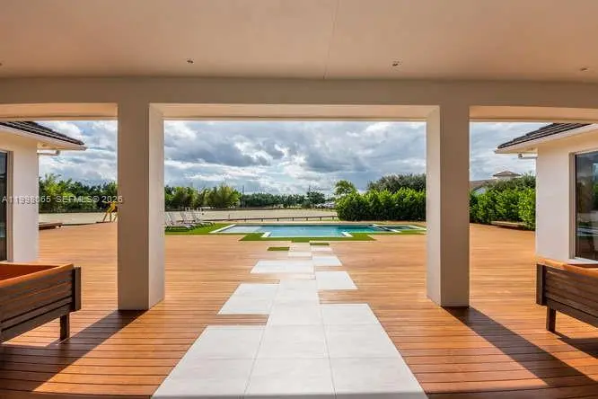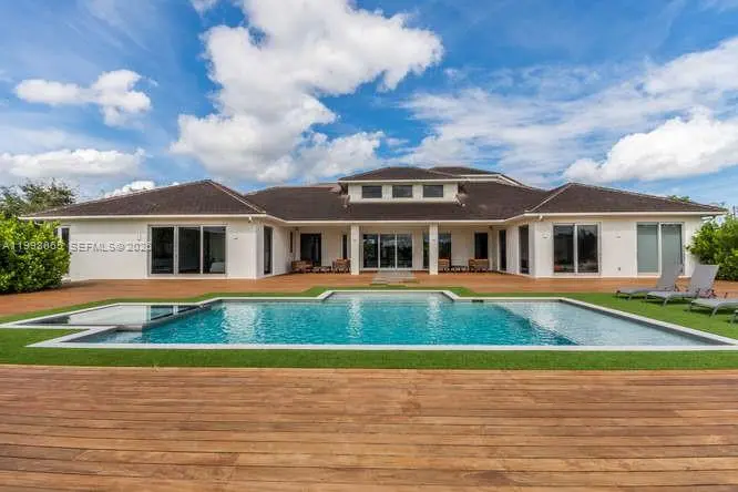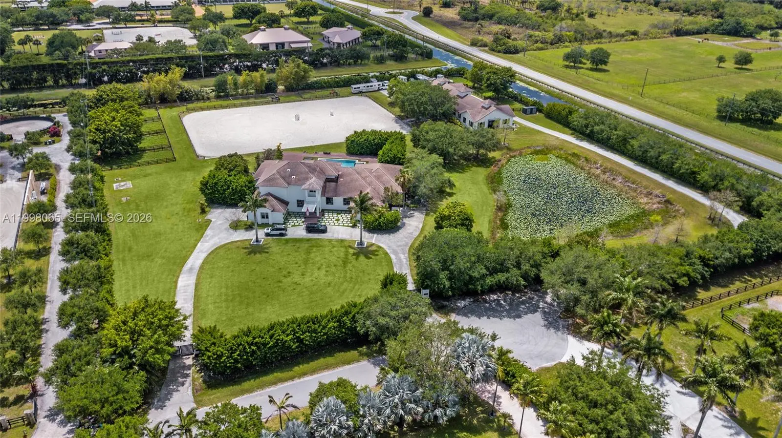 Breathtaking contemporary estate in Palm Beach Point set on over 7 acres of prime equestrian land. This exceptional property features soaring 30-foot ceilings, 8 spacious bedrooms, 9 bathrooms, plus 2 studio staff or grooms quarters in the barn with full kitchen and baths. Designed with both luxury and functionality in mind, the property includes a brand-new 12-stall center-aisle barn complete with tack room, feed room, laundry room, and two wash and grooming stalls. Nine irrigated grass paddocks provide ample turnout, while the impressive 230 x 150 arena is finished with premium Martin Collins “Clopf” footing. A stunning pool overlooks the arena, creating the perfect balance between high-end living and world-class equestrian facilities.