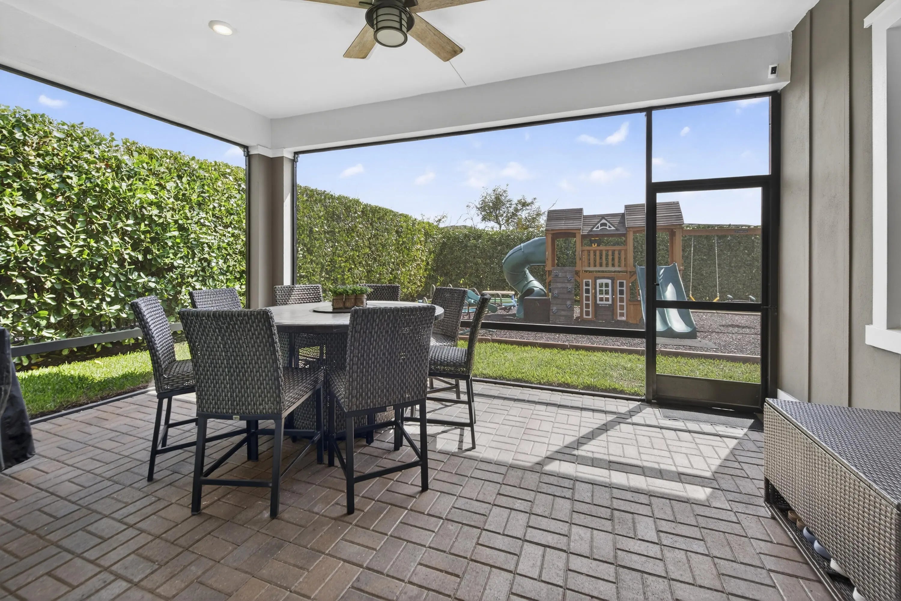 Located in the exclusive gated Community of Arden, this beautifully customized 4 bedroom 3 bath, meticulously maintained, one-story house is the ideal home for raising a family! Situated on a Premium oversized Corner Lot with many upgrades including Custom Barn Doors, Crown Molding and Plantation Shutters throughout the entire home, Full Custom Master Closet, 3 Car Garage including Swisstrax flooring, mini split A/C, Tesla Charger,Whole House Generator, Custom Landscaping with 12' Tall Calusias for Privacy. Every Kids dream backyard with Swing set, clubhouse, seesaw plane,trampoline,all boarded with rubber mulch bedding. See attached for Complete list of upgrades. Enjoy Resort Style Amenities with scenic trails and lakes, Gorgeous Clubhouse & Share Barn! Welcome Home! Arden has quickly become one of the most sought after communities. Florida's first Agrihood commmunity where residents can enjoy farm-to-table living right in their back yard. With a 5 acre working farm, residents have access to fresh produce and herbs, providing an eco-friendly lifestyle that emphasizes healthy, sustainable living. This Agrihood concept fosters a strong sense of community and allows families to connect with nature in a meaningful way!