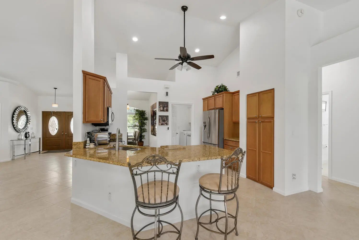 Cathedral Ceiling(s), Entrance Foyer, High Ceilings, Walk-In Closet(s), Bedroom Layout - Split, Pull Down Stairs