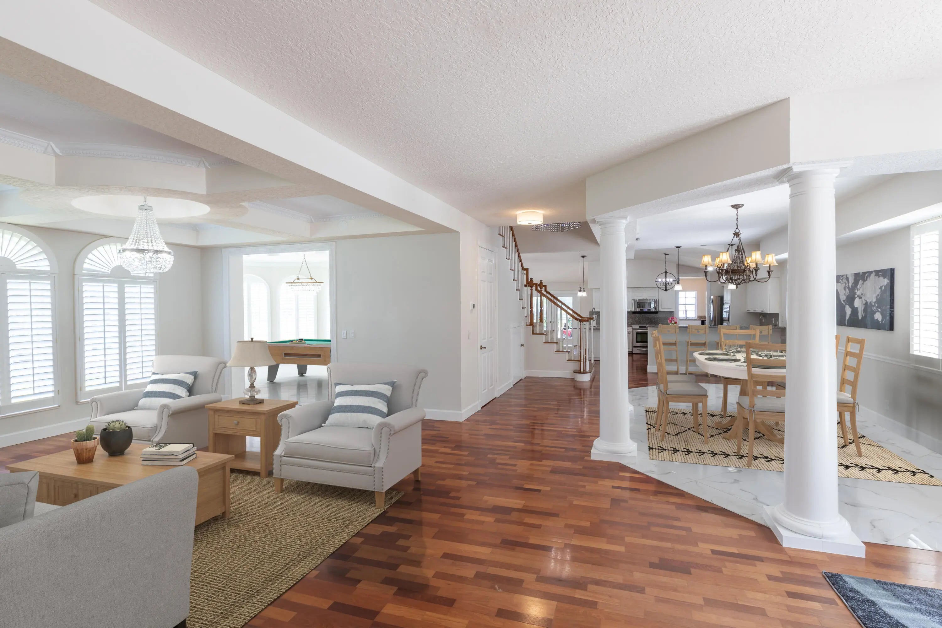 One Of A Kind For Lease! THIS IS 10 ACRES!! Custom Built Ten Acre Equestrian Estate Home Can Be Leased Partially Furnished. Large CBS Center Isle 8 Stall Barn! Feed And Tack Room, Hot And Cold Water, Lounge With Full Bath And Washer/Dryer! Custom Stall Doors Are Just The Start To The Many Upgrades This Beautiful Barn Has To Offer! Over 500K Invested In Your State Of The Art Lighted Dressage Arena With Great Drainage! Over 200K In Professionally Irrigation, Pond Is Stocked With Trophy Bass, Landscaped, Fenced And Cross Fenced! 5/5 Home Can Formally Entertain Or Back Yard Barbeque! The Kitchen Offers Granite, Double Ovens, Wine Cooler, Separate Vegetable Sink And Large Walk In Pantry! Lessor Will Consider Long Term Lease, Available Now! Primary Bed And Bath Located On The Main Level Offers, Walk In Closet, His And Her Granite Vanity, Large Open Shower And Separate Soaking Tub. Spiral Staircase To Your Private Loft/Library. Game Room/Playroom Has Tons Of Windows To View Your Manicured 10 Acres! Separate Cozy Family Room With Fireplace And French Doors Out To The Pool And Patio Area. The Impressive Staircase Will Take You To The Three Could Be Four Additional Bedrooms. Three Full Baths Plus Media/Play area! The Second Level Is The Perfect Hangout For The Kids! All Will Enjoy The Pool And Patio Area Done In Beautiful Travertine. Heated Salt Water Pool. Sprinkler System Waters Entire Property. Concrete Driveway With Electric Decorative Gates. Home And Barn Have Gutters, Full Hurricane Protection Plus Full House Generator! Barn Is Cement Block With Roll Down Hurricane Doors! Pool, Fountain, Outside Lights, Etc. All Operated From Your Phone! This is a must see property! Caloosa is a 350-home equestrian community of 5-acre Estates with paved roads and its own police patrol in Palm Beach Gardens. It is ideally situated 14 min to excellent restaurants, I-95, and upscale shopping, 25 min to breathtaking beaches, and Palm Beach Int'l Airport. Caloosa's 32-acre horse park makes this community a real gem in Palm Beach County with over 30 miles of interior horse trails and amenities that include: dressage and riding arenas, a jump course, tennis, basketball, and pickleball courts, children's playground along with a BBQ area and community meeting room. This private park is for exclusive use by Caloosa residents and their guests. Residents enjoy events such as movie nights, chili cook-offs, BBQs, holiday parades, and small horse shows. Home Has Been Virtual Staged.