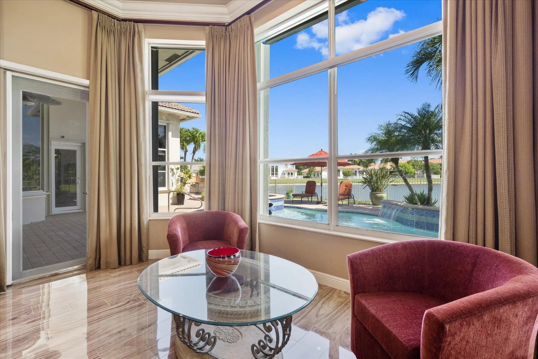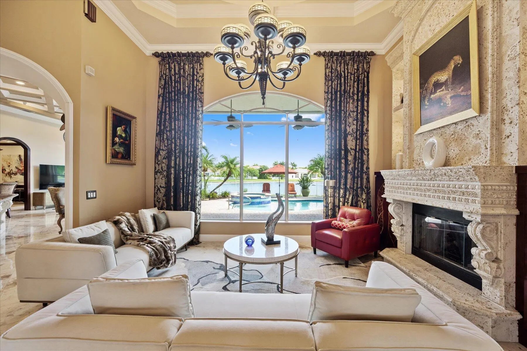 This beautifully appointed estate home in Equestrian Club is available for the off season and 2026-2027 season. Located in the heart of Wellington, near WEF and International Polo Club. This home features 4 bedrooms, 4 full bathrooms and 1 half bath, dining room, laundry room,player piano room, and living room with fireplace. The kitchen and family room overlook the beautuful backyard. The master bedroom is tastefully decorated and has a sitting area and walk in closets.The backyard has a beautiful lakefront view, with pool, spa, and summer kitchen.