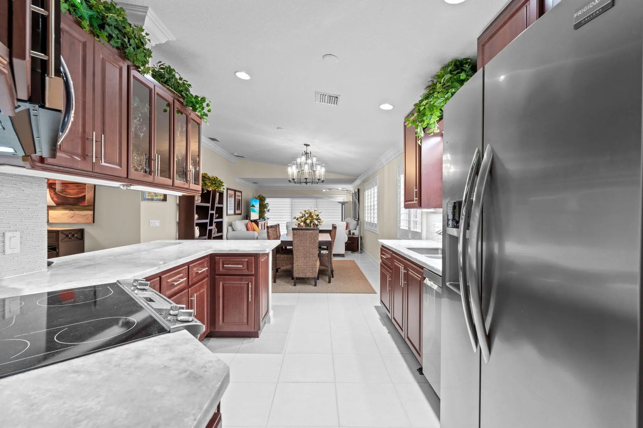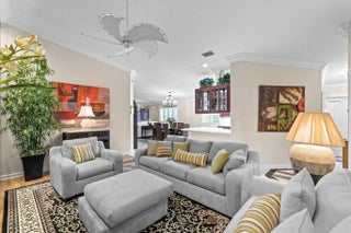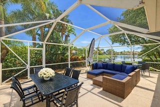 Welcome to one of the most desirable lakefront settings in VillageWalk—an extended Capri Villa set on a quiet cul-de-sac with water views and a bright, open layout. This well-maintained 2-bedroom, 2-bath home features an updated kitchen with quartz countertops, cherry wood cabinetry, and under-cabinet lighting, all opening seamlessly to the main living areas. Custom built-in cabinetry along the living room wall adds both function and a clean, finished look. The split-bedroom floor plan provides privacy, with an updated primary bath featuring a frameless glass shower. Flooring includes neutral tile and natural bamboo, creating a warm, cohesive feel throughout. Step outside to a screened-in, oversized patio with beautiful landscaping and lake views—perfect for relaxing or entertaining. The north/south exposure allows for great natural light during the day and sunsets in the evening. Additional features include custom wood window trim, plantation shutters, Hunter Douglas blinds, and a finished garage with epoxy floors. VillageWalk is a guard-gated community known for its lakes, walking and biking paths, and exceptional amenities, including a fitness center, pools, tennis courts, pickleball, billiards, a library, playground, pet spa, salon, post office, and a town center with a café and community gathering spaces. HOA includes cable, internet, 24-hour security, landscaping, and full access to amenities—making for easy, low-maintenance living. Available furnished or unfurnished.